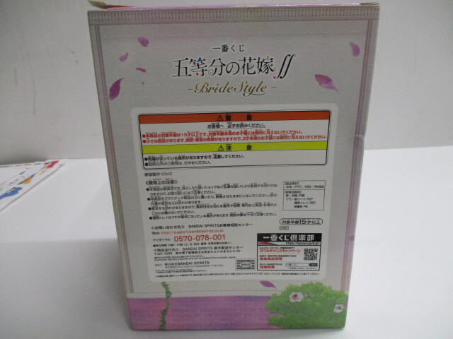 | 商品名 : 一番くじ 五等分の花嫁∬-BrideStyle- 中野二乃 花嫁フィギュア 状態 【中古品】 ●開封済みです。 ●箱にキズなどが見受けられますが、本体には問題ありません。 ※ 商品お状態に関しましては個人差がありますので新品同様の物をお探しの方は御遠慮ください。 | |||
