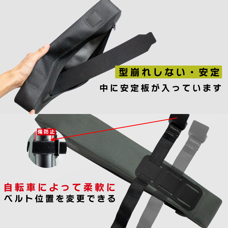 ロードバイクやクロスバイク、マウンテンバイクなどの自転車フレームに取付るフレームバッグです。 防水・耐久性に優れているので自転車通勤や通学、自転車配達などおすすめなサイクルバッグ。 自転車のフレームに綺麗にマッチ! 防水効果抜群なので急な雨も気になりません。 様々なフレームに合うようにベルト穴が複数あります。 [防水性] 表面全体に防水TPUコーティング加工。 ジッパー部分には水の侵入をガードする防水ジッパーを採用。 完全防水ではございません。 [耐久性] 分厚い600D素材・縫い線がないシームレス。 耐久性高く擦れや摩擦にも強くタフ! [容量約1.5L] 両サイドにポケット有り: 片面はノーマルポケット、片面には小ポケット サイクルにスマートフォンや鍵など、サイクルに必要な物を収納。 [ペダリングを邪魔しない] [中に安定板が入っているので型崩れしない・安定] 商品内容自転車フレームバッグ、日本語説明書 サイズ36.5×9.5cm 幅5.2cm 正味重量約150g 容量約1.5 L 材質600D 防水TPUコーティング 《ご注意》 ・商品は入荷によりキズがある場合があります。 ・保証対象外になりますのでご了承お願い致します。 ・ディスプレイ環境により実物と色が異なる場合が有ります。 ・入荷時期により予告無く一部仕様変更する場合が有ります。 |