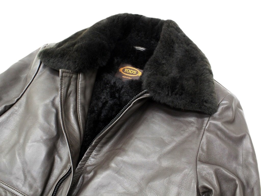 121万新品訳有◆M程度◆TOD'Sトッズ◆最高級オバインレザー ジップブルゾンジャケット ダークブラウン濃茶