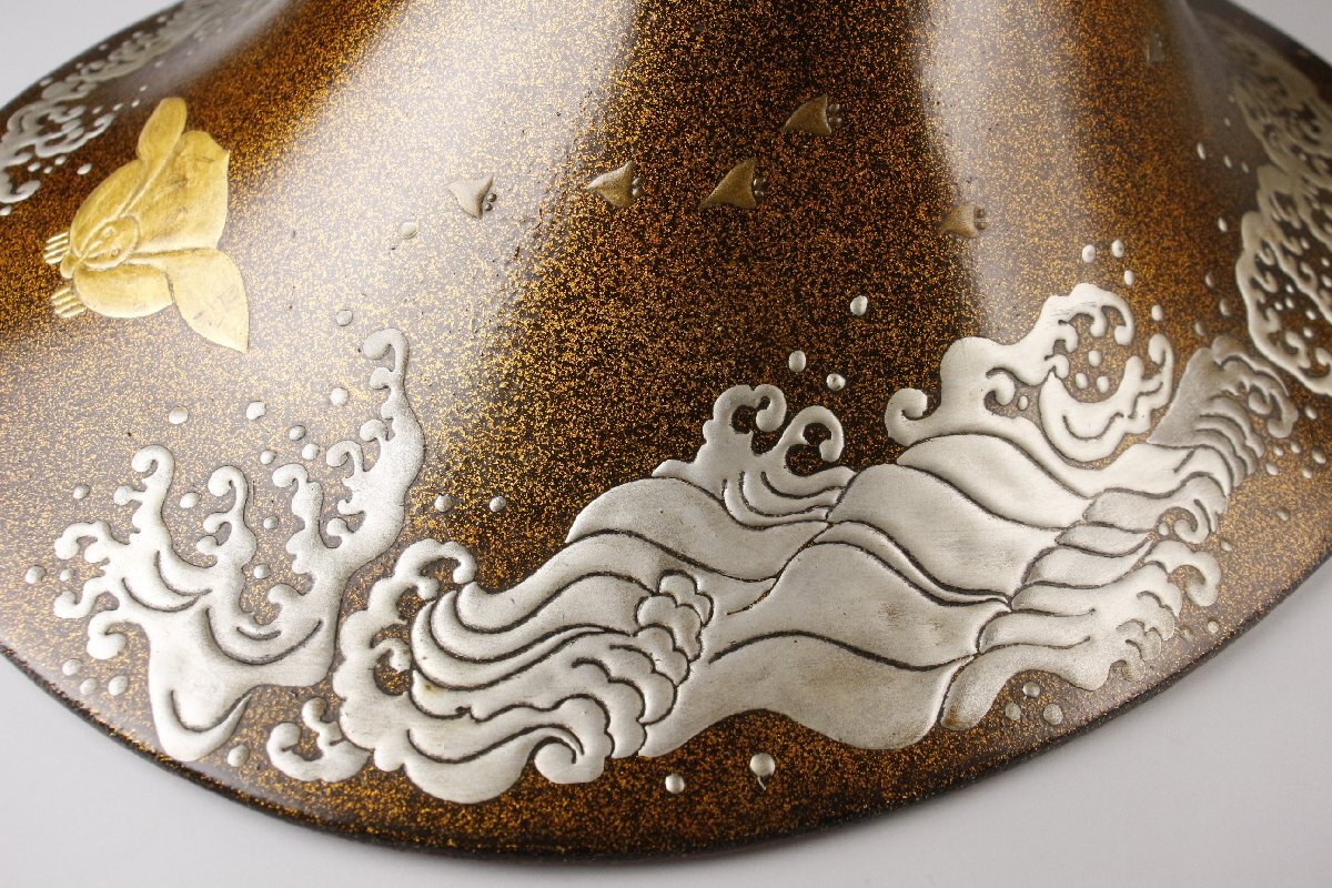 [.II]25.10 251022N09* * * 商品詳細 * * * ここでしか出逢うことのできない唯一の美をご紹介させて頂きます。 美しい梨地に豪快な高蒔絵が施された華やかな陣笠です。 煌めく姿は大変美しく、飛沫を上げる大きな波はとても迫力があり、 波音や風圧まで感じられるようなリアリティがあります。 千鳥が飛び交う様や兎の紋からは逞しく強い生命力が感じられ、 武具の持つ迫力を一層強く引きたてます。 見た目も良く鑑賞ごたえもある素晴らしい逸品を この機会に是非お手元にてご堪能下さい。 ■サイズ/横33.5cm×縦14cm×奥行39.5㎝ ■状態/経年による傷み、スレ、キズ、サビ、 表面に割れ、剥げ、直し、ヤケ、シミがございます。 ※写真にてご確認、ご了承の上ご入札下さい。 ![]() !かんたん決済 * * * 発送詳細 * * * 入金確認後3営業日以内に発送致します。 ※直接引き取りも可能です。 60~160サイズにつきましては 佐川急便、ゆうパックのどちらかで発送いたします。 ゆうパック発送の場合、弊社の発送日から追跡サービスに問合せ番号が反映されるまで 約1日ほどお時間がかかりますのでご了承下さい。 * * * 注意事項 * * * 運送中の破損があった場合は速やかに当社までご連絡下さい。 保険を利用するのに受取連絡後に運送会社による現場での破損状況確認が必要となります。 勝手に返送されますと保険の適用外となりますのでご注意ください。 * * * * * * お問い合わせ:082-236-8669 |