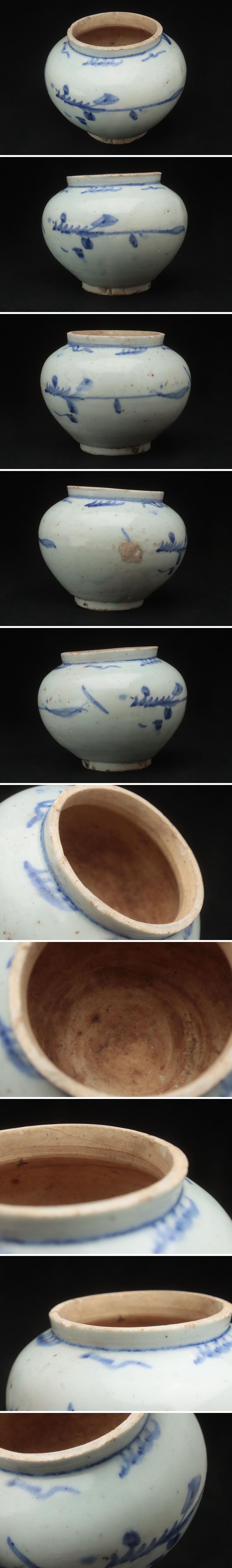 ◆ 朝鮮美術 李朝 白磁染付草花文壺・李朝青花壺 高9.8cm 木箱附・青花花卉紋小罐 朝鮮古陶 古美術 ◆