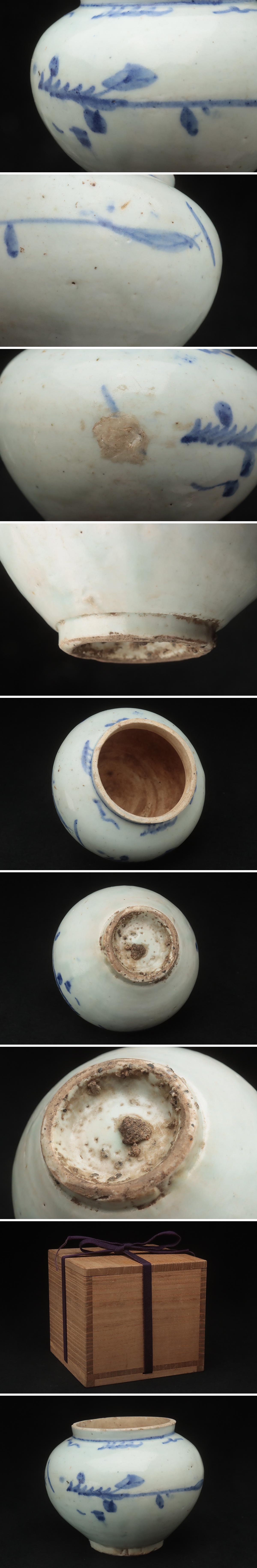 FC821 朝鮮美術 李朝 白磁染付草花文壺・李朝青花壺 高9.8cm 木箱附・青花花卉紋小罐 朝鮮古陶 古美術 [浏览原始页面]