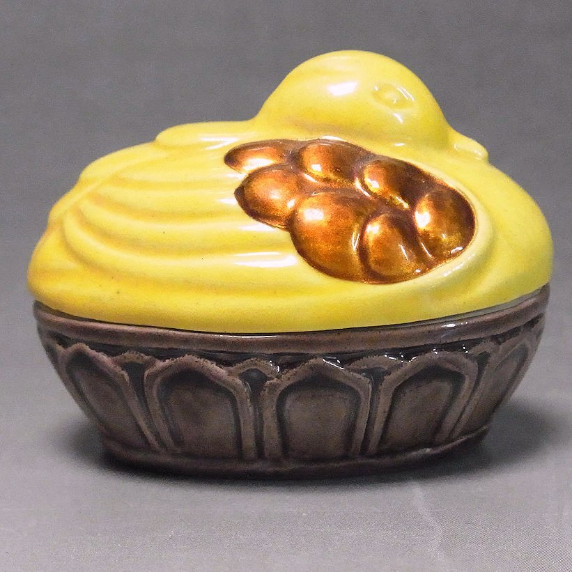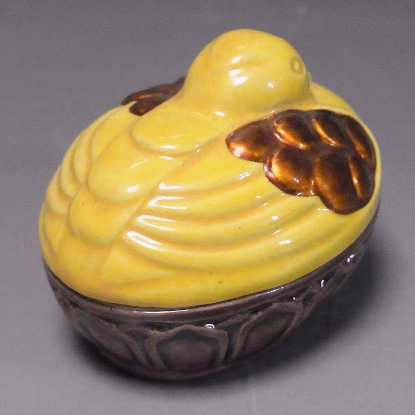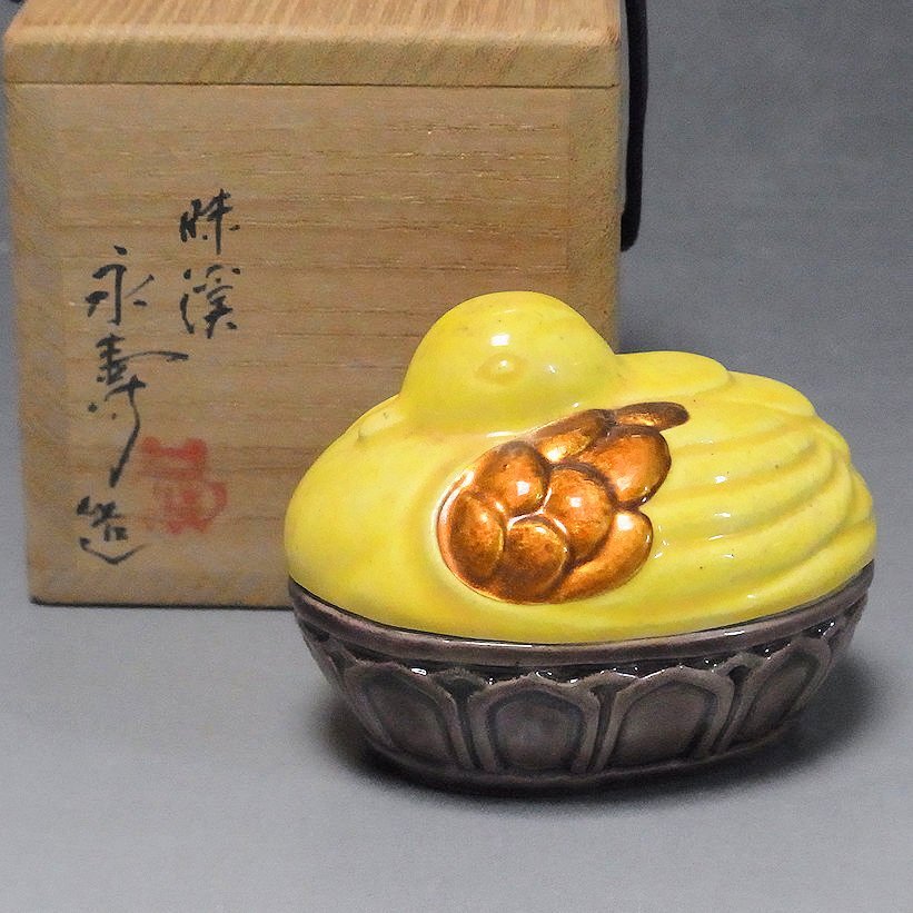 | 斉藤商店★味渓 矢口永寿 黄交趾 鴨香合 やました販売 共箱★裏千家お茶道具 |