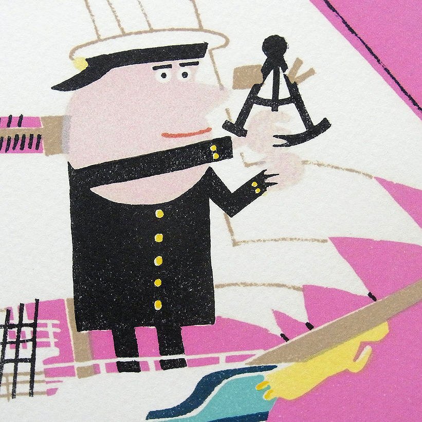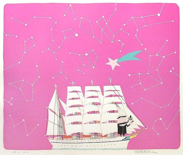 | 斉藤商店★柳原良平 1986年制作 リトグラフ 二代目 日本丸★帆船アンクル船長横浜 |