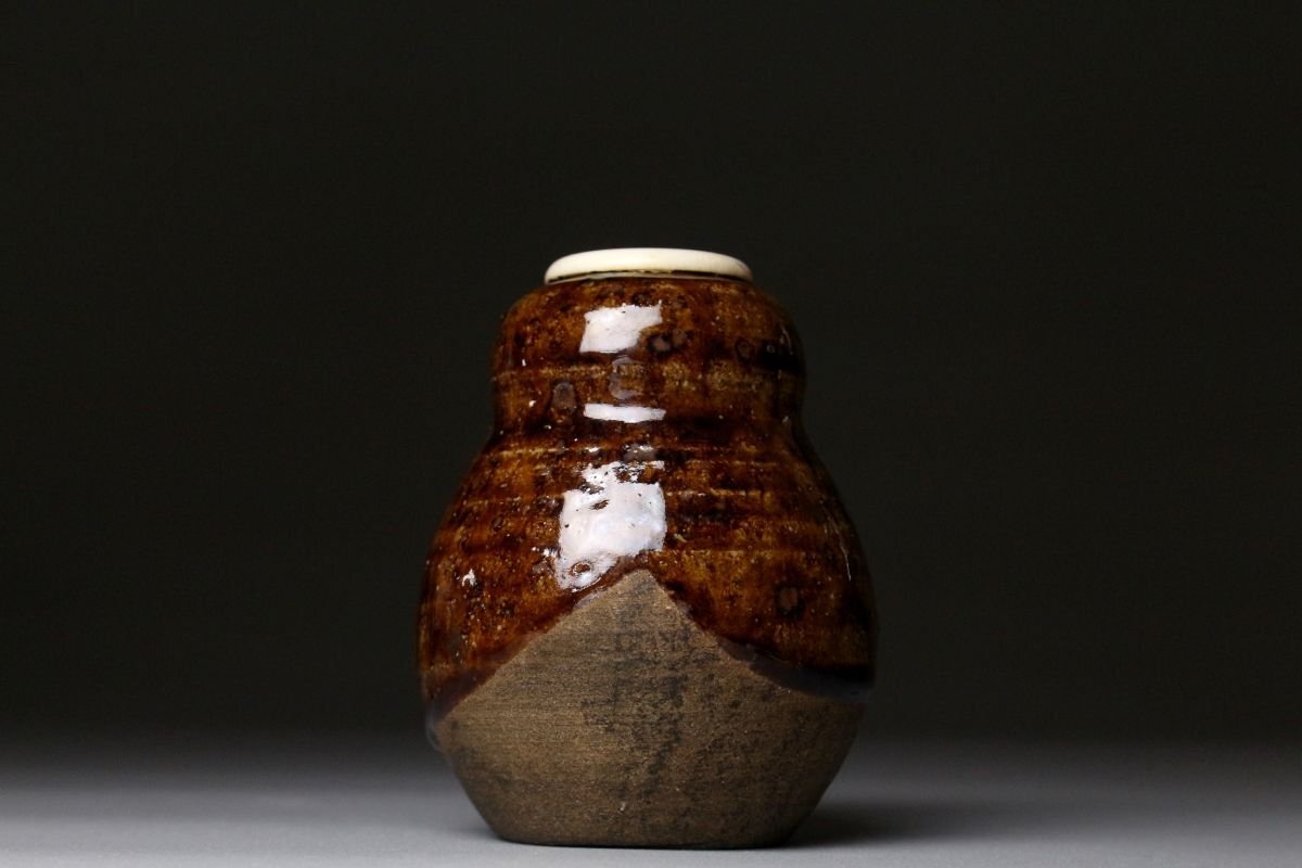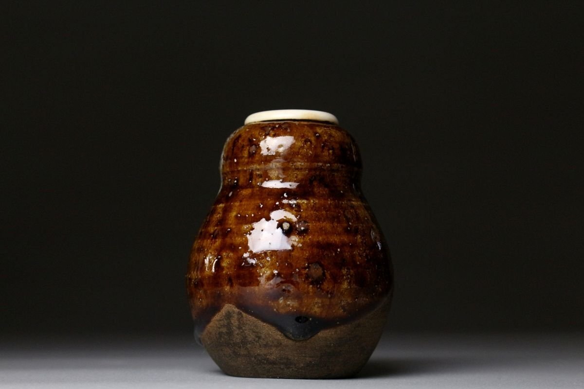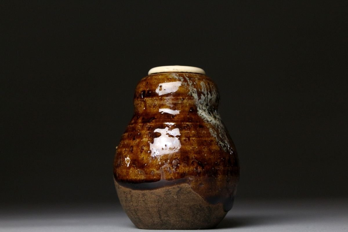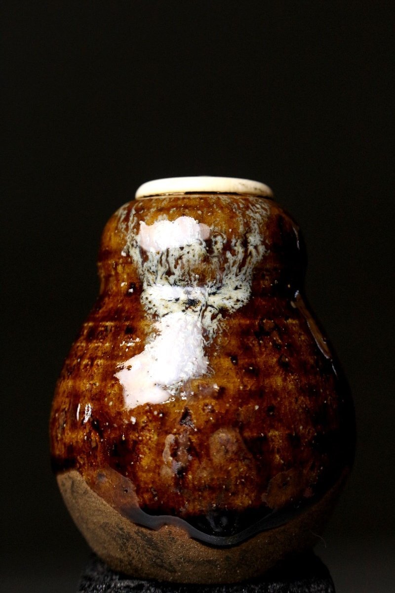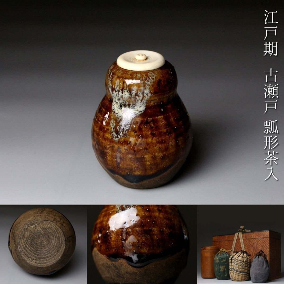 [.EI]25.11 25111723T* * * 商品詳細 * * * ここでしか出逢うことのできない唯一の美をご紹介させて頂きます。 古瀬戸の茶入れは昔から茶人に珍重されてきました。 本品は美濃系の柔らかな土に飴釉が掛かり首回りほんのりと青白い色彩が浮かび上がります。 腰付近には釉薬の垂れが付き、拳ほどの大きさに雄大な景色を宿した見事なお品でございます。 また、瓢形の形状は可愛らしくも取り回しが良く、美しさと実用性を両立した造りでございます。 仕立ても見事で末永く愛用して頂くに最適な逸品でございます。 この機会に是非お手元にてご堪能ください。 ■商品内容/ 茶入、仕服3点、挽屋、箱 ■サイズ/横6.5㎝×高7.5㎝ 箱:横28㎝×高18㎝×奥行10㎝ ■状態/ 経年によるスレ、小傷、汚れ 箱にスレ、傷、汚れがございます。 ※写真にてご確認、ご了承の上ご入札下さい。