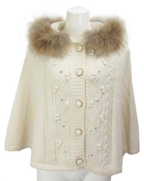 | 商品名 | オフ白 ファー付 ニット ポンチョ 38 |