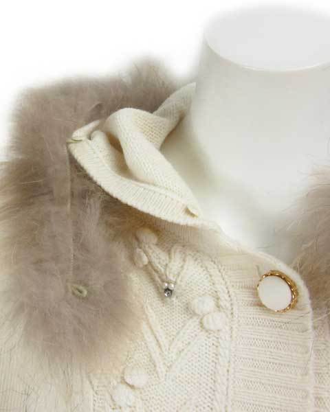 | プライドグライド prideglide オフ白 ファー付 ニット ポンチョ 38 |