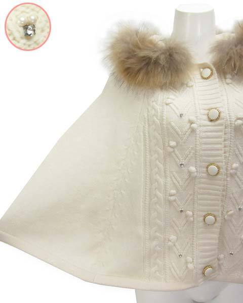 | コメント | フェミニンなデザインのニットポンチョ。 オフ白なので、ボトムスやインナーのお洋服のお色を選ばず コーディネートして頂けます。 秋口から春先まで活躍してくれるアイテムです。 ファーは取り外し可能です。 |