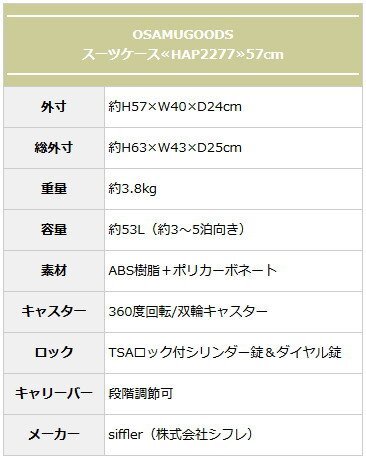 アウトレット品のため細かな傷や目立たない汚れがある可能性がございます。 ご理解の上ご入札ください。 OSAMUGOODSのトランク風スーツケース。 『シフレロック』や『双輪キャスター』など機能性も兼ね備え、内装や付属のネームタグも可愛いジッパースーツケースです!