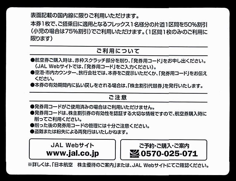 有効期限は「2026年5月31日」です。 個数1で1枚です。 本券1枚で大人普通運賃(小児の場合は普通席小児普通運賃)1名様分の片道1区間を、50%割引でご利用になれます。 ※詳細につきましては、画像やホームページの株主割引ご利用案内をご覧ください。 |