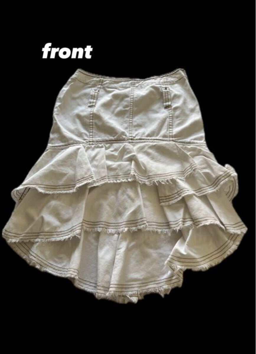 ホワイトのレイヤードフリルスカート、裾がフリンジ加工。| 出价者 | 信用 | 价格 | 时间 |