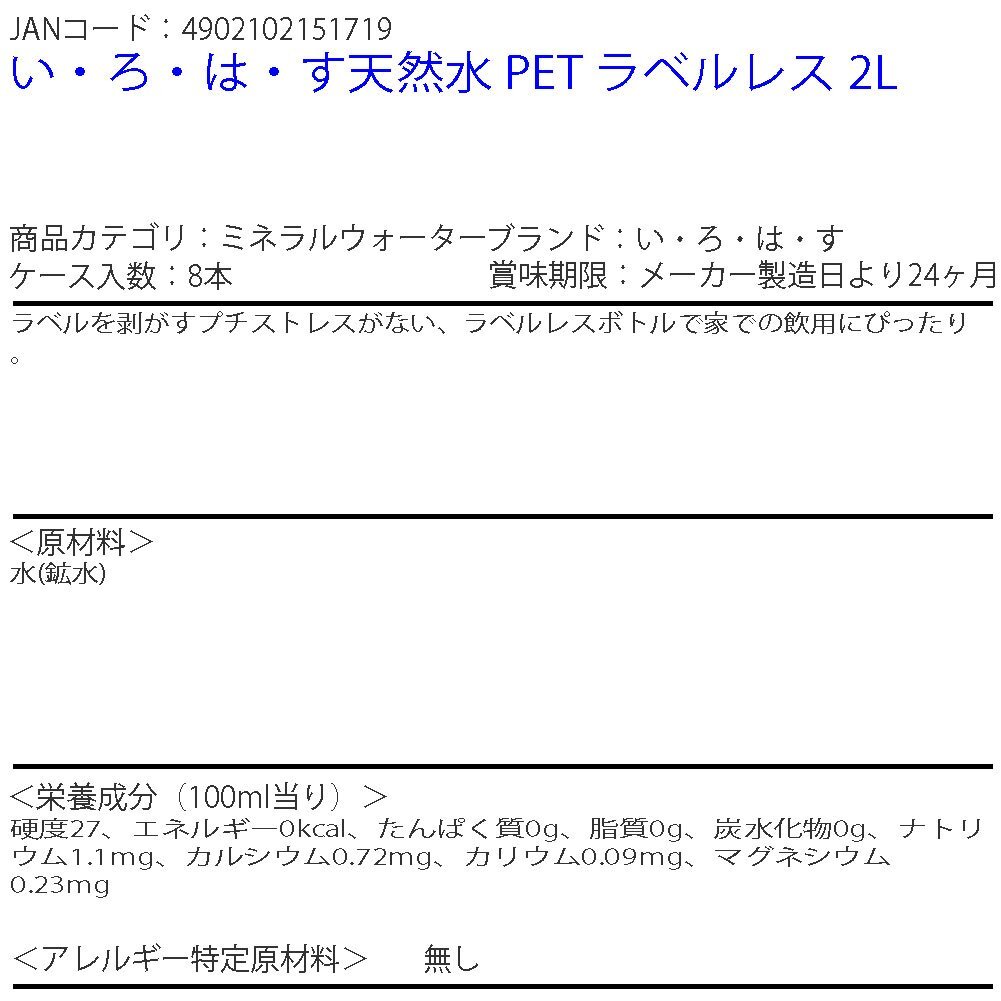 | 商品名 | い・ろ・は・す天然水 PET ラベルレス 2L | |