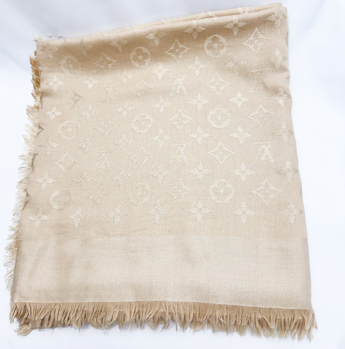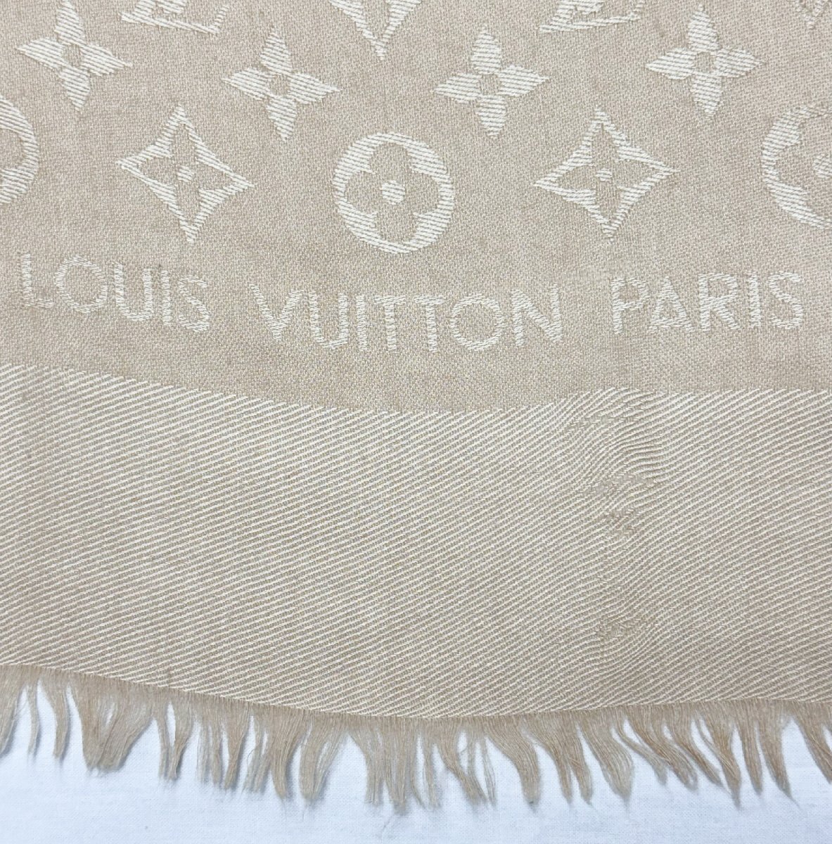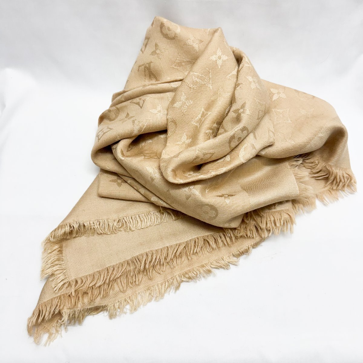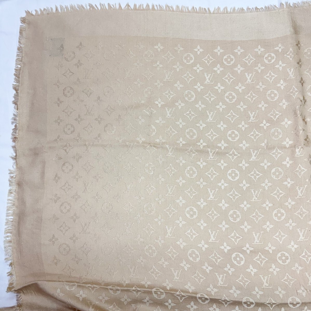 1円~ルイヴィトン モノグラム ショール ストール 大判 136cm×146cm 訳あり ベージュ クリーニング済み スカーフ | |||
