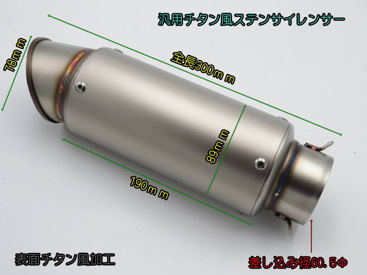 | 汎用 GP ショート サイレンサー チタン風ステン 差込み径 60.5mm ステンレス | ||