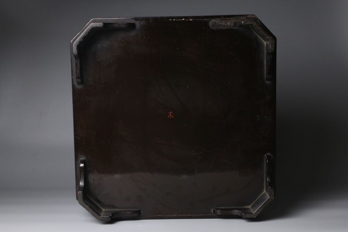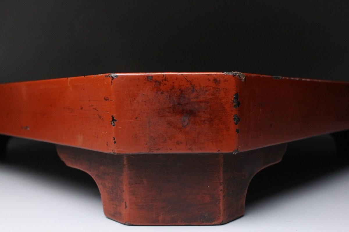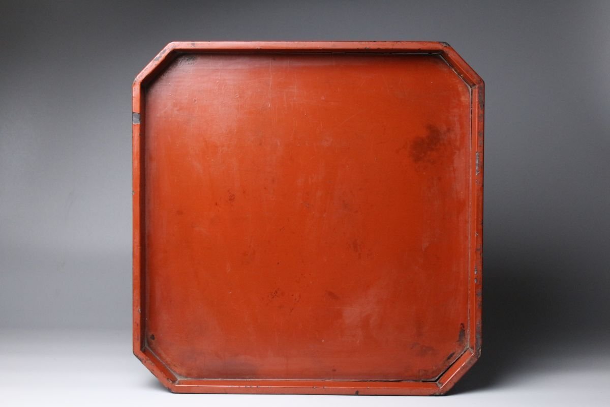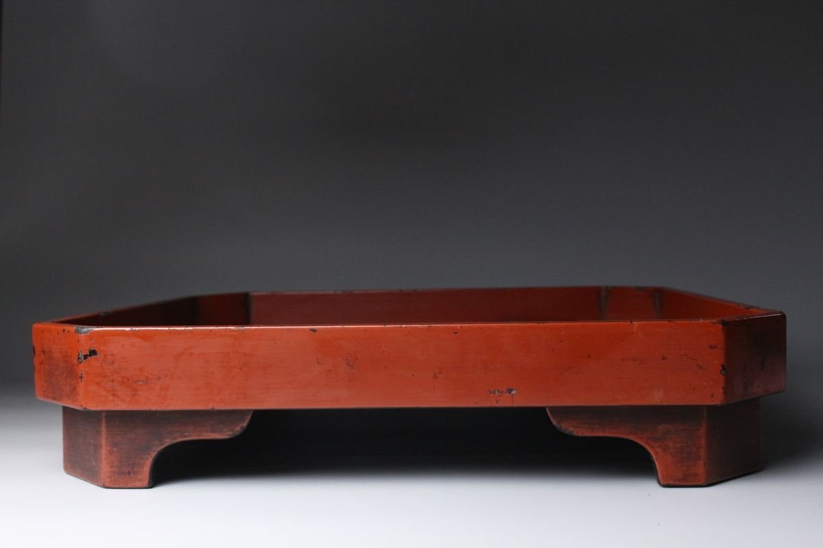 ①[.-O]25.10 251017F24 T* * * 商品詳細 * * * ここでしか出逢うことのできない唯一の美をご紹介させて頂きます。 長い歳月を経てなお、静かに美しさを湛える「時代 古根来 木製漆塗 隅切四方盆」。 時代を重ねるごとに深みを増した漆の艶、擦れや色の変化が、 この盆の歩んできた歴史を物語っています。 漆の赤味は年月とともに落ち着きを帯び、使用によるスレが下地の黒をわずかに覗かせます。 使い込まれた木地の風合は手に触れるたびにしっとりとした温もりを感じさせ 「わび・さび」を見事に表現しています。 お茶席の道具としてはもちろん、現代の空間にも調和する逸品。 経年の味わいを愉しみながら、悠久の時を感じさせる一枚です。 この機会に是非お手元にてご堪能ください。 ■サイズ/横36.5㎝×高7.5㎝ ■状態/ 経年によるスレ、傷、汚れ、ヒビ、割れ、欠け、剥がれがございます。 ※写真にてご確認、ご了承の上ご入札下さい。