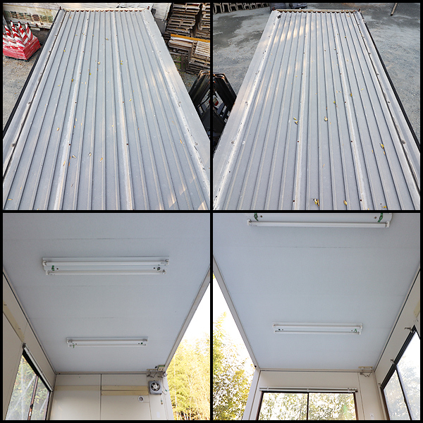 屋根・天井の状態 屋根:特記事項なし。雨樋サビ。塩ビパイプ劣化・変形・破損あり。 天井:特記事項なし。 ※屋根と天井の撮影時目視確認のみ為、雨漏りの状態は不明。 フレーム・土台の状態 特記事項なし。 壁パネルの状態 屋外:特記事項なし。 室内:特記事項なし。 床板の状態 傷み、破損あり。 扉の状態 タイプ:扉なし。 状態:特記事項なし。 鍵:付属なし。 ※鍵の付属がある場合、1本となります。 その他の状態 ■窓 : 特記事項なし。 ■照明 : 逆富士40W 2灯式蛍光灯×3 ■換気扇 : 一般換気扇(プロペラファン)×1、換気扇フード破損。 ■コンセント : 電源用(2口)×2、電源用(3口)×2、エアコン用200V(1口)×2 中古品ですので相応の傷・汚れ・損耗等がございます。 経年劣化相応の内容に関しては特記致しません。 電気系統、窓、ドア(鍵含む)など目視による欠損確認のみとなります。 不具合や故障の有無に関しては回答致しかねます。 当方の気付かない点、説明不足、記載間違い、 万が一、見落とし等があった場合は 商品の現状(写真)を優先とさせて頂きますので、ご了承ください。 現状渡しとなりますのでご理解の上、ご購入願います。 |