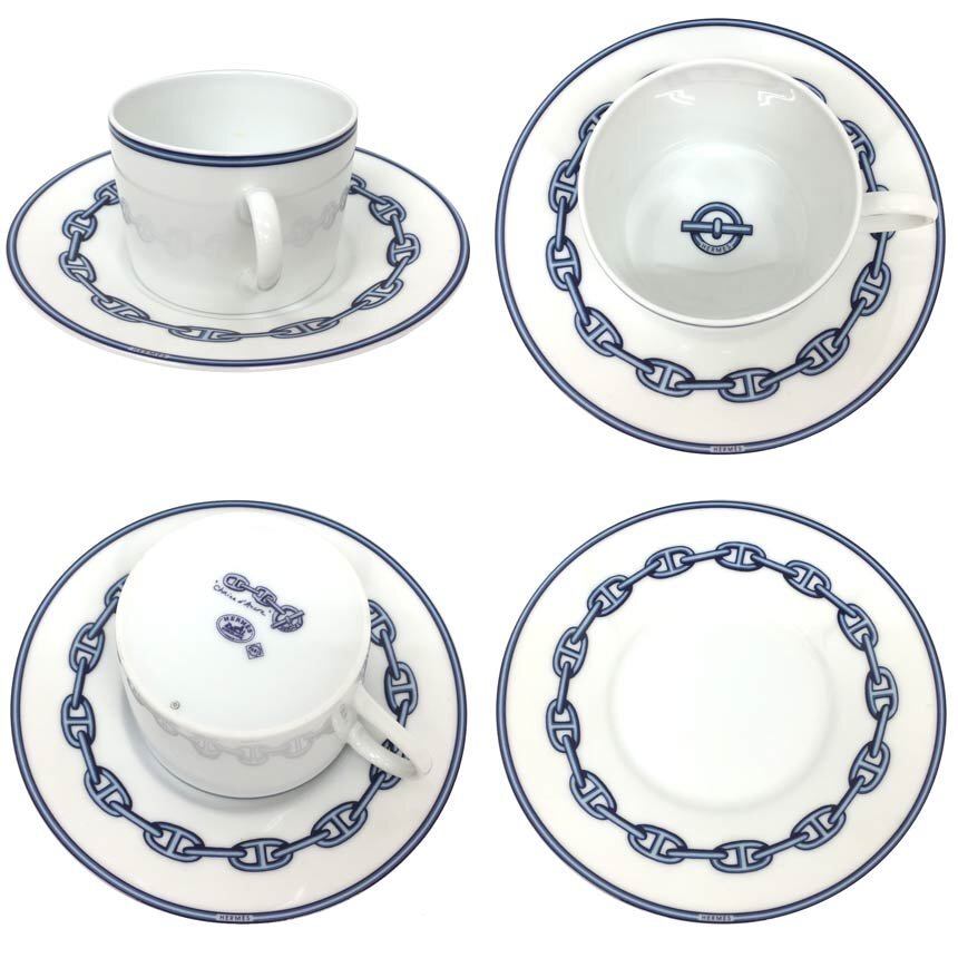 | 商品名 | HERMES カップ&ソーサー C/S デミカップ&ソーサー シェーヌダンクル Chaine d'Ancre ホワイト×ブルー 陶器 食器 未使用 |