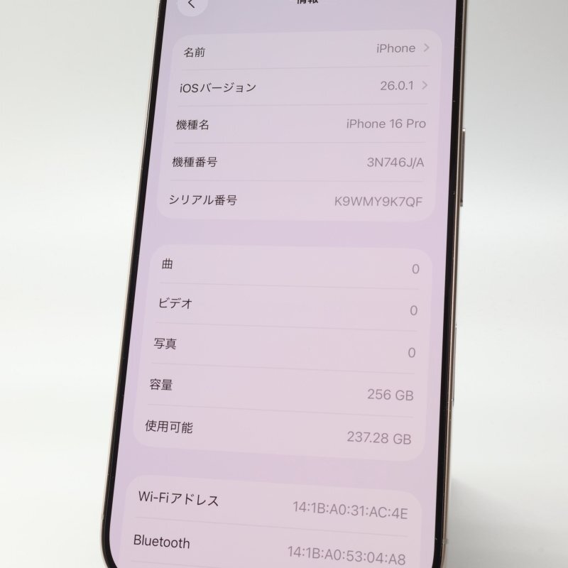 店頭展示品です。■機種 : iPhone16 Pro 256GB ナチュラルチタニウム A3292 3N746J/A