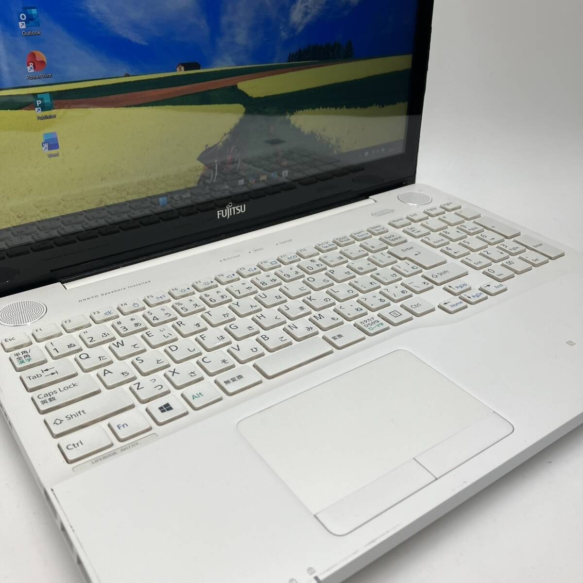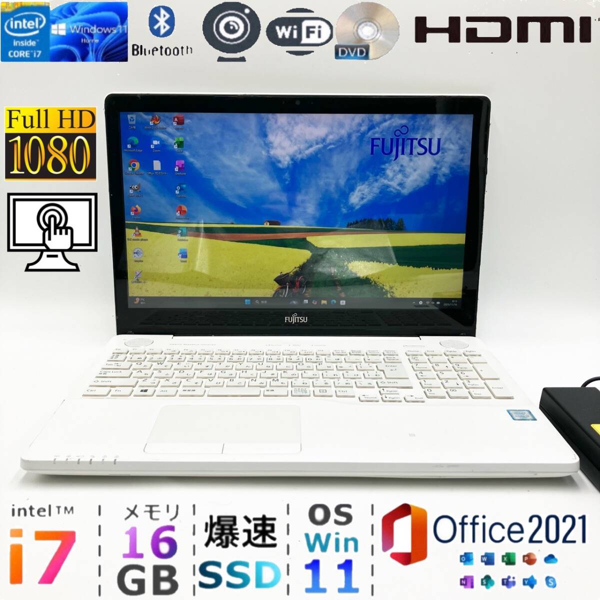 | 【配送商品の中身】 □ノートパソコン本体 (新品SSD、メモリ内蔵済み) □ACアダプタ □延長保証パンフレット 【スペック】 ■メーカー・型番:富士通 AH77/Y ホワイト ■インストールOS:最新版Windows11Home 64ビット ■CPU:Core i7-6700HQ(4コア/8スレッド) ■メモリ:DDR416GB(8GBx2) ■容量:爆速新品SSD512GB ■光学ドライブ:DVD-RW ■Office ・Microsoft Office 2021 Professional Plus(!から購入した正規品でプロダクトキー付属しています) ■装備 ●15.6型ワイドLEDバックライト付タッチパネル式 高輝度・高色純度・広視野角 TFTカラーLCD (フルフラットファインパネル) 1920×1080ドット 1677万色 ●無線LAN対応 IEEE802.11a IEEE802.11b IEEE802.11g IEEE802.11n IEEE802.11ac ●有線LAN対応 ●USB3.0準拠×3(左側面×3(うち1ポートは電源オフUSB充電機能付))、USB2.0準拠×1(右側面×1) ● HDMIポート搭載 モニターに出力して大画面での作業や動画視聴も可能 ●Webカメラ搭載 ●Bluetooth v4.1搭載 ●マイク・ラインイン・ヘッドホン・ラインアウト・ヘッドセット兼用端子(φ3.5mmステレオ・ミニジャック) ■動作確認