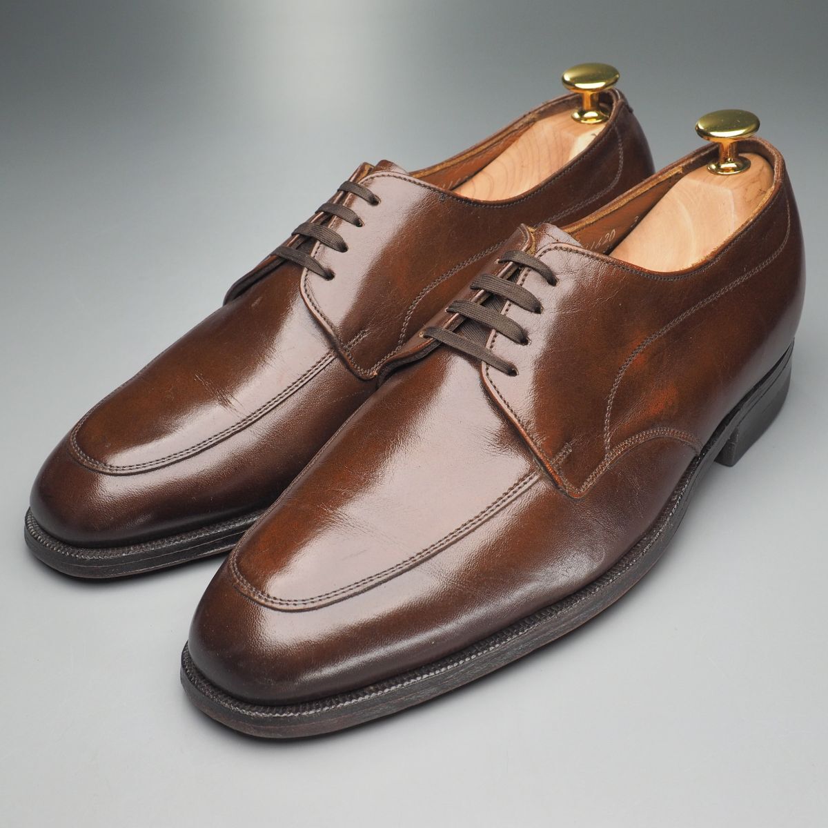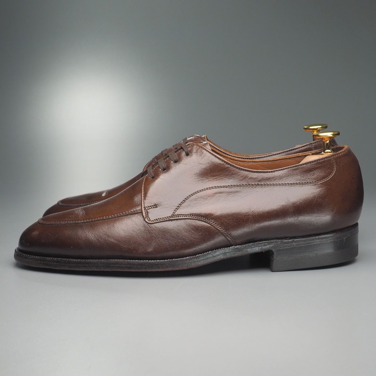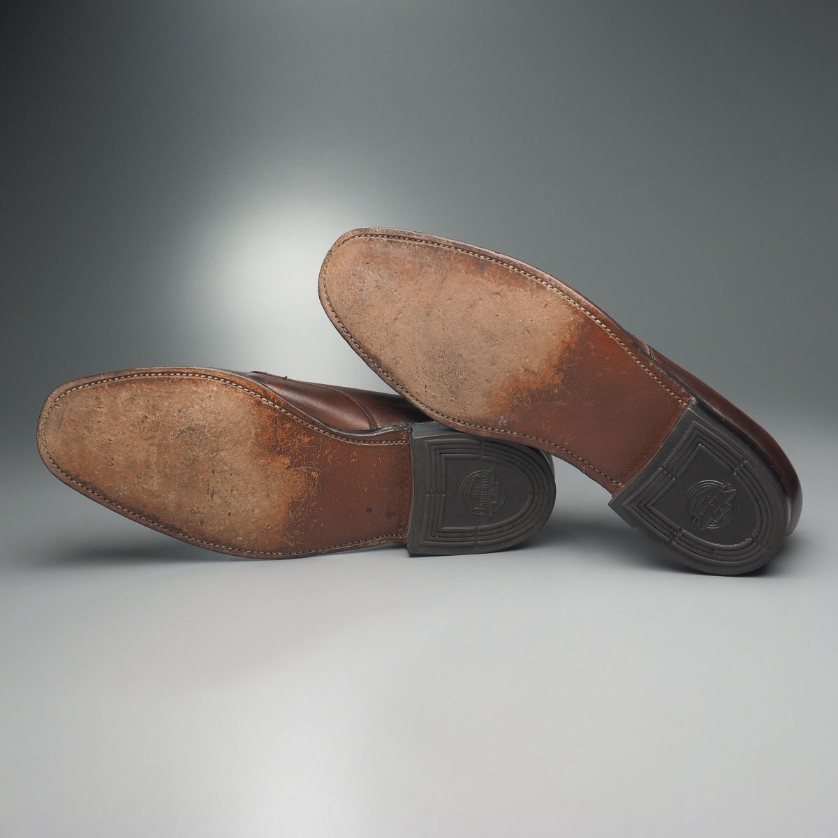 1892年創業、アメリカの老舗シューブランド「フローシャイム」の一足です。 恐らく72年、82年のいずれかの製造と見られるヴィンテージのUチップ。 アッパーには程よいハリと柔軟性を併せ持つ茶のレザーが用いられ、底付けにはグッドイヤーウェルテッド製法を採用し堅牢に形成。 オン・オフ問わずマルチな活躍が期待される汎用性の高いデザインです。 製法:グッドイヤーウェルテッド アウトソール:レザー トップリフト:ラバー(釘穴なし) ライニング:レザー×キャンバス ベロ裏:フェルト ※撮影用のシューキーパーは付属致しません。 ※本物の商品ですのでご安心の上オークションをお楽しみ下さい。 ※タイトル頭の英数字は弊社の管理番号です。 ※ほかにも多数の商品を出品しています。 ※同梱に関しましては「まとめて取引」でのみ対応可能です、その他の方法での同梱対応は出来かねます。 (※商品の特性上、同梱対応出来ない商品もございますので予めご了承下さい。) |