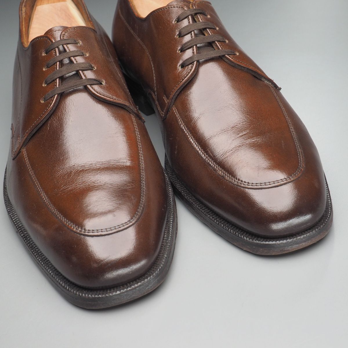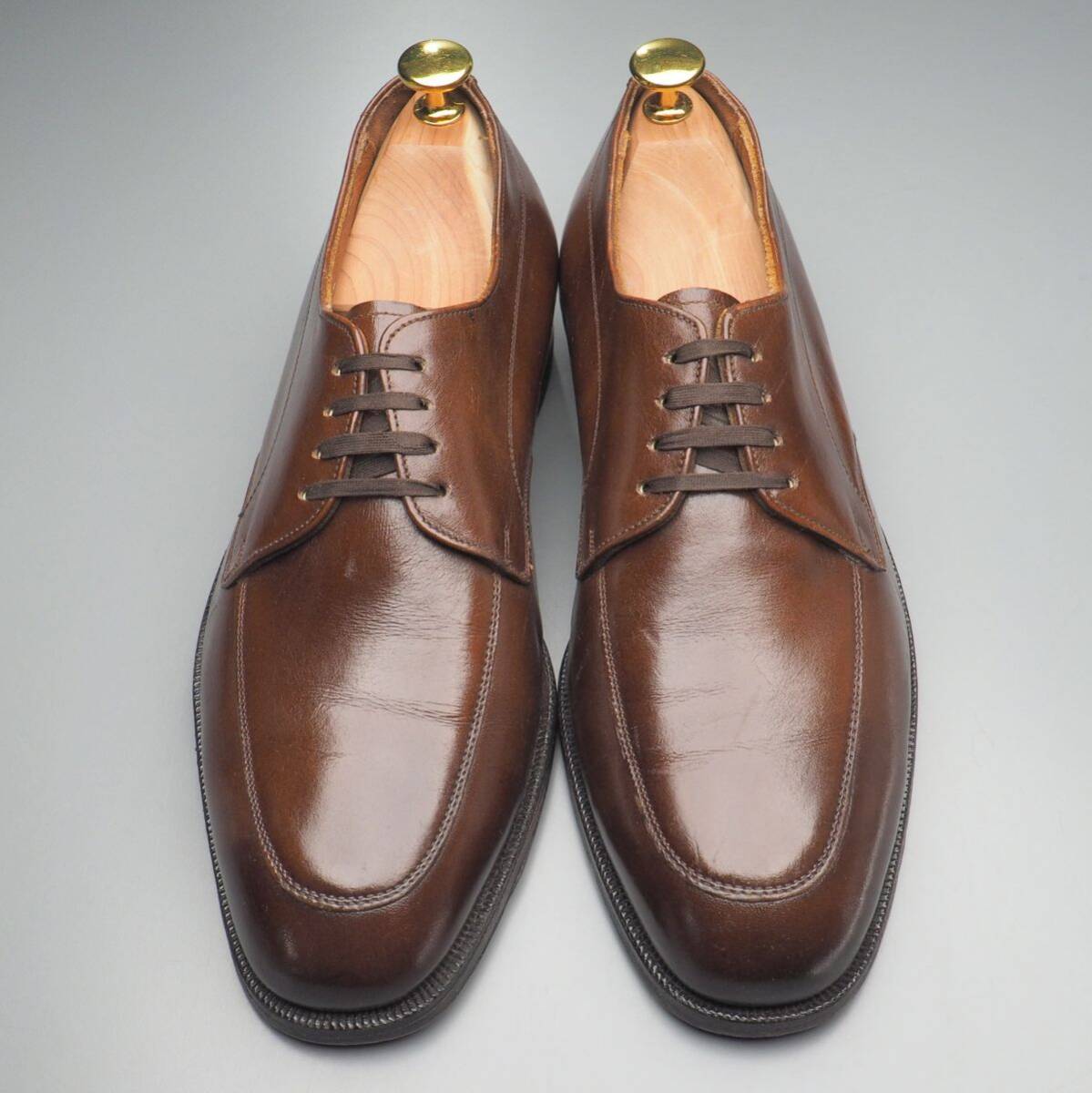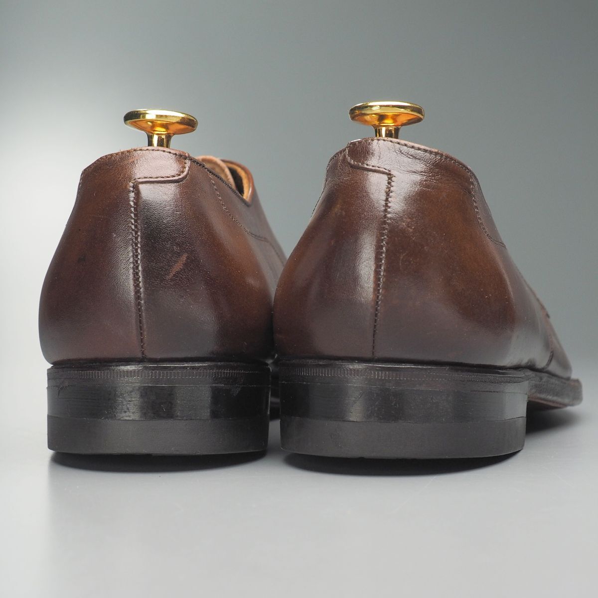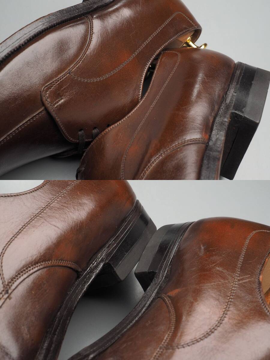 1892年創業、アメリカの老舗シューブランド「フローシャイム」の一足です。 恐らく72年、82年のいずれかの製造と見られるヴィンテージのUチップ。 アッパーには程よいハリと柔軟性を併せ持つ茶のレザーが用いられ、底付けにはグッドイヤーウェルテッド製法を採用し堅牢に形成。 オン・オフ問わずマルチな活躍が期待される汎用性の高いデザインです。 製法:グッドイヤーウェルテッド アウトソール:レザー トップリフト:ラバー(釘穴なし) ライニング:レザー×キャンバス ベロ裏:フェルト ※撮影用のシューキーパーは付属致しません。 ※本物の商品ですのでご安心の上オークションをお楽しみ下さい。 ※タイトル頭の英数字は弊社の管理番号です。 ※ほかにも多数の商品を出品しています。 ※同梱に関しましては「まとめて取引」でのみ対応可能です、その他の方法での同梱対応は出来かねます。 (※商品の特性上、同梱対応出来ない商品もございますので予めご了承下さい。) |