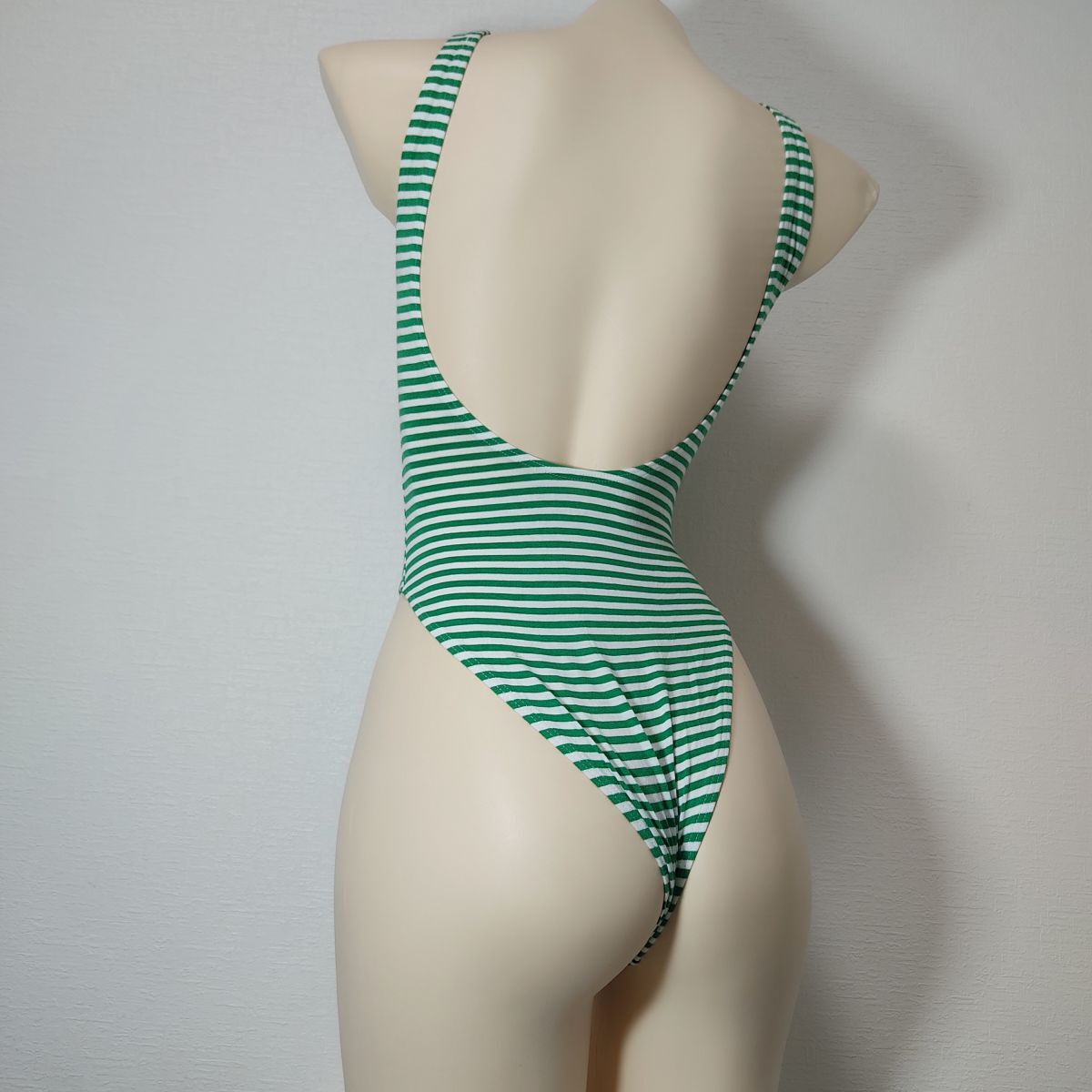 32*ワコールレオタード(M)★ハイレグTバック グリーン緑ホワイト白ボーダー★伸縮性あり男性も [浏览原始页面]