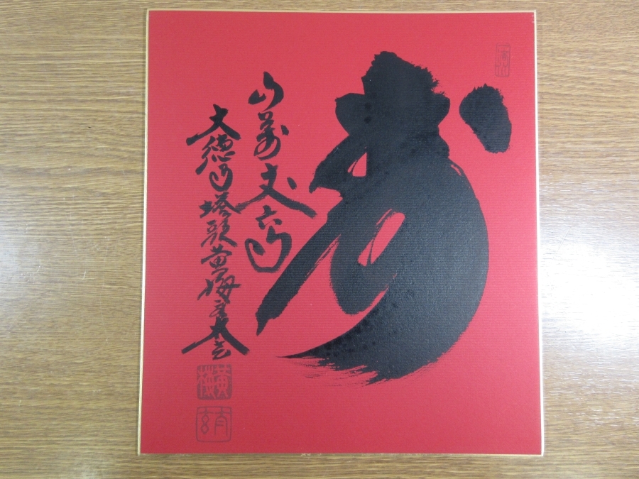 | 説明 | 京都 大徳寺 黄梅院 小林太玄の『寿山萬丈高』直筆(肉筆) 共タトウ付 色紙です。 状態は良好です。 このままで飾って楽しめます、額にでも入れて楽しまれてください。 コレクターの放出品です、画像で御確認下さい。 ★九州地方の買出し品です。 買出したままでの出品です、御入札宜しくお願い致します。 入札は早めにお願い致します。 一人でも入札があれば梱包作業に入りますので、素早い発送が可能です。 早期終了あり。 小林太玄は、 昭和13年(1938)奉天生。 6才のとき出家し、 花園大学卒業後相国寺僧堂の大津櫪堂に参禅。 昭和50年大徳寺塔頭黄梅院住職に就任した。 |