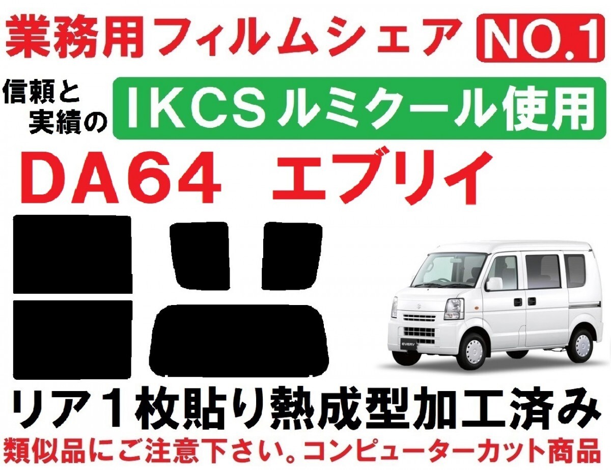 DA64エブリイ バン・ワゴン用『IKCSルミクール使用』1枚貼り成型加工済みフィルム、 リア5面セットです。(専用施工液付き) ・信頼の品質と実績で永い間業務用フィルムとして選ばれ続けているIKCS製品です。 ・業務用フィルムの中で最も信頼性の高い、ベストセラー商品です。 ・詳しくはIKCS株式会社HPをご覧ください。 ※『ルミクール』は当店でも 施工実績・販売実績NO.1の超人気商品です。 平成17年~ 27年 DA64V・DA64W、全グレードに対応出来ます。 バン・ワゴン 標準ルーフ・ハイルーフなどにより、ガラスの種類が複数有るため ご落札後お車の詳細を質問させて頂き、適合する商品をご用意させて頂きます。 ※適合等 ご不明な点など有りましたら、お気軽にご質問下さい。 ◇◆◇施工に便利なプロ仕様のヘラセット付き商品も出品中です◇◆◇ こちら ◇◆◇精密コンピューターカット◇◆◇ 貼りやすさを最優先に各部のサイズ・形状など微調整し、改良を重ねた独自のデータを製作。 高精度な最新・大型カッティングプロッターによるカットで正確で滑らかなカットラインを再現しています。 施工業者だからわかる、貼りやすいサイズ・形状に仕上げています。 ◇◆◇リア1枚貼り成型加工済み◇◆◇ リアガラスの湾曲に合わせて熱成型加工して有りますので、平面に貼るのと同様にたるみが出ず1枚貼り出来ます。 通常の成型加工に加え、独自の加工を施し しっかりと成型加工してありますので、追加工など一切不要です。 ◇◆◇精密コンピューターカット◇◆◇ 貼りやすさを最優先に各部のサイズ・形状など微調整し、改良を重ねた独自のデータを製作。 高精度な最新・大型カッティングプロッターによるカットで正確で滑らかなカットラインを再現しています。 施工業者だからわかる、貼りやすいサイズ・形状に仕上げています。 ◇◆◇リア1枚貼り成型加工済み◇◆◇ リアガラスの湾曲に合わせて熱成型加工して有りますので、平面に貼るのと同様にたるみが出ず1枚貼り出来ます。 ※最適な状態に成型加工して有りますので、ヒートガン(ドライヤー)等は不要です。 ◇◆◇専用施工液付属◇◆◇ 軽視されがちな施工液ですが、貼りやすさに大きく関わる部分になります。中性洗剤などで代用せず、必ず付属の専用施工液をご使用下さい。 濃度については車種・季節などにより変わりますので、個別にお知らせ致します。 国内シェアNO.1の『IKCSルミクール』を使用しています。 ルミクールは経年退色が極めて少ない着色加工技術はもちろん、安定した冷暖房効率をアップする熱線遮断効果や断熱効果、内装を守り日焼けを防ぐため、全てのフィルムで99%の紫外線カットを実現しています。 ガラスの飛散防止効果で高い安全性を保ち、ハードコートタイプなのでキズにも強いカーフィルムです。 改良を重ねながら 信頼の品質と性能で、永い間業務用フィルムとして選ばれ続けています。 ■フィルムの種類■ 可視光線透過率 3% NS-003HC 可視光線透過率 7% NS-008HC 可視光線透過率13% NS-015HC 可視光線透過率20% NS-020HC 可視光線透過率30% NS-030HC 可視光線透過率46% NS-045HC ■全商品、キズに強いハードコート・紫外線(UV)99%カットです。 ※可視光線透過率が低くなるほどフィルムの色は濃くなります。 サイドとリアで濃さを替えたり等、可能です。 部分的にフィルムが必要になった場合、単品販売も承ります。 他にもエブリイ用フィルム、各種出品中です。こちらもご覧ください。 下記のOEM車両にも適合します。 ・マツダ スクラム バン・ワゴン(DG64V・DG64W) ・日産NV100クリッパー・クリッパーリオ(DR64V・DR64W) ・三菱ミニキャブバン・タウンボックス(DS64V・DS64W) ご不明な点など有りましたら、お気軽にご質問下さい。 | ||