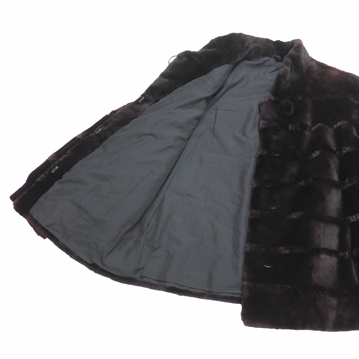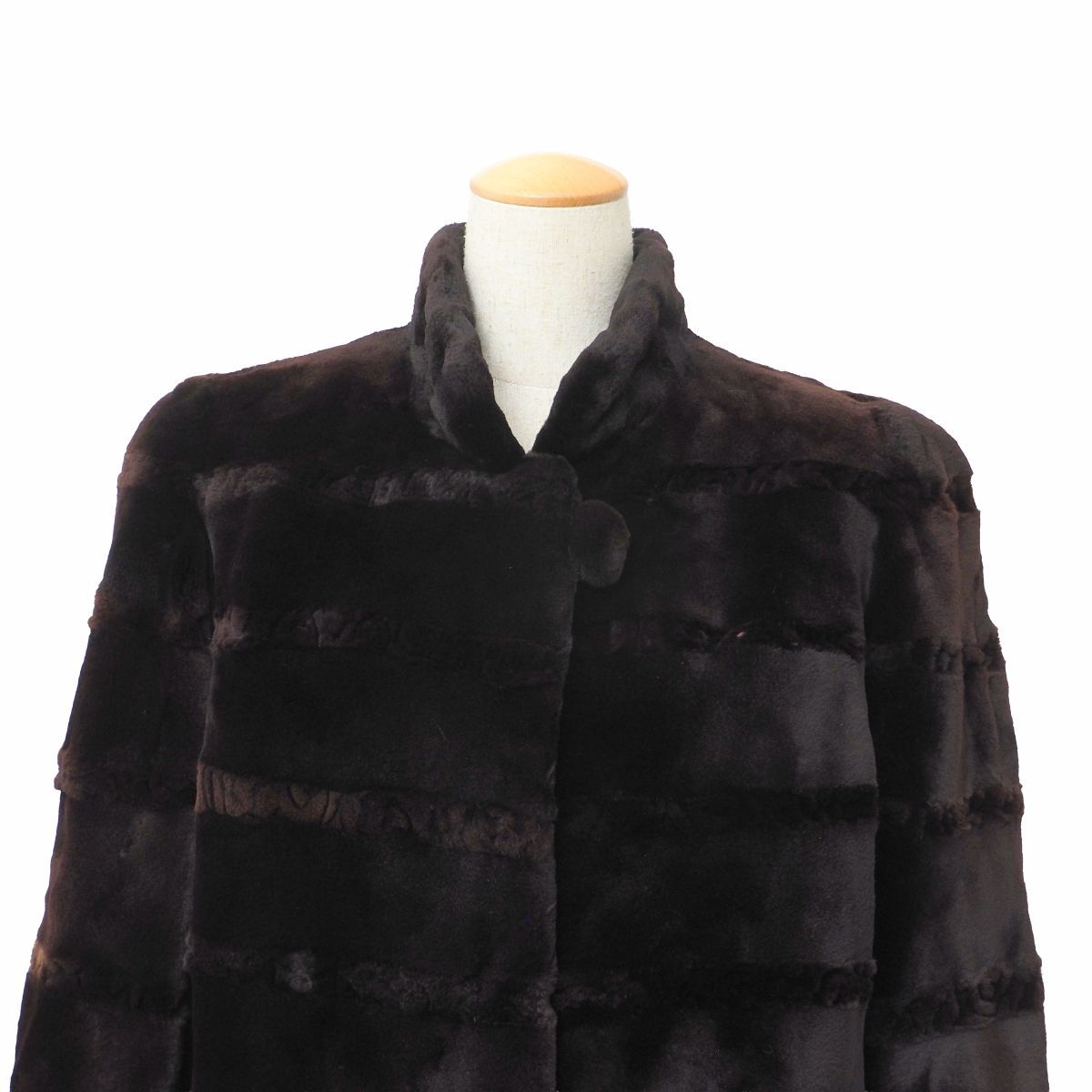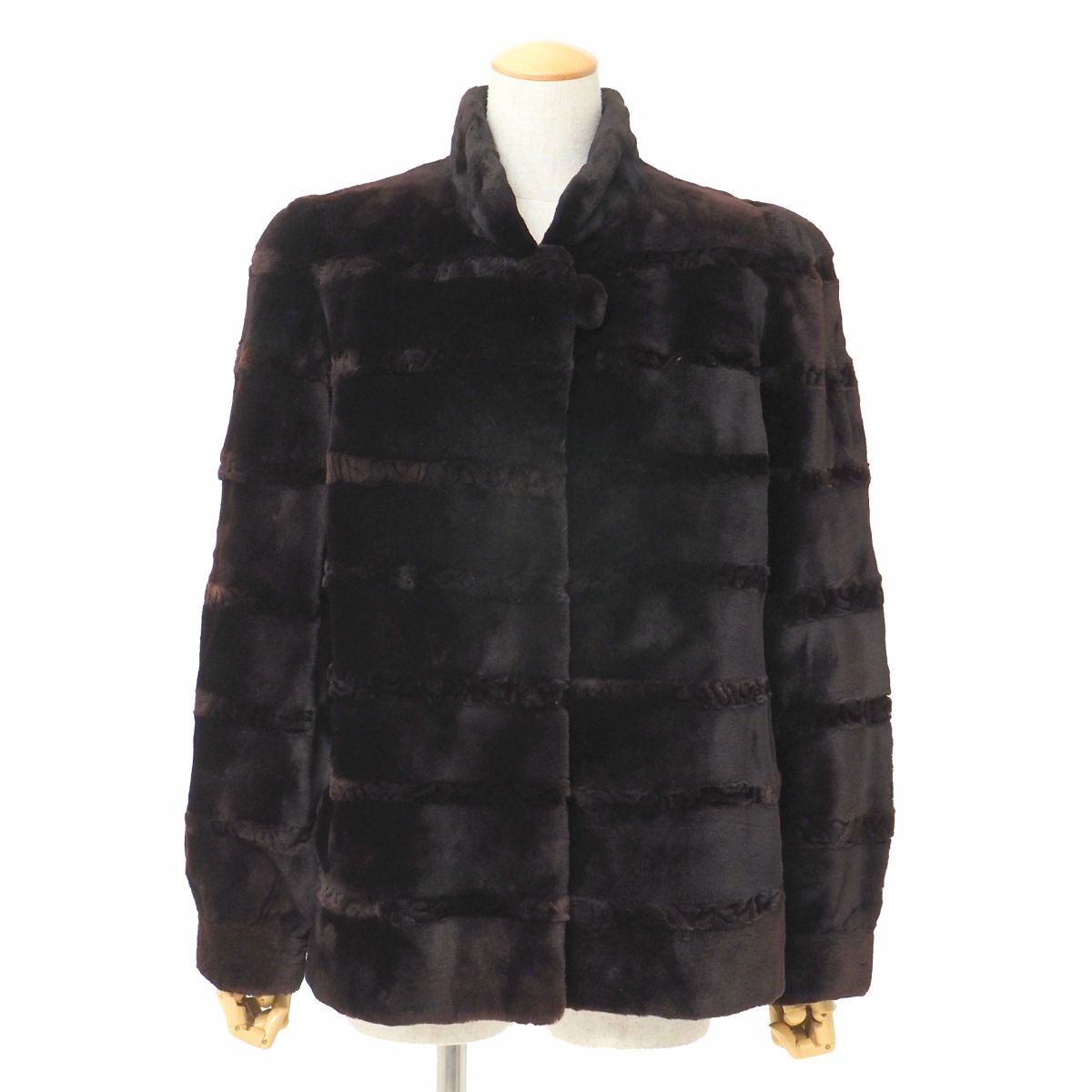 | GS5725◇サガミンク 銀サガ シェアード ファーコート ファージャケット ぽんぽんボタン ボーダー柄 ハーフ丈 サイズF 毛皮 ブラウン系 | |||