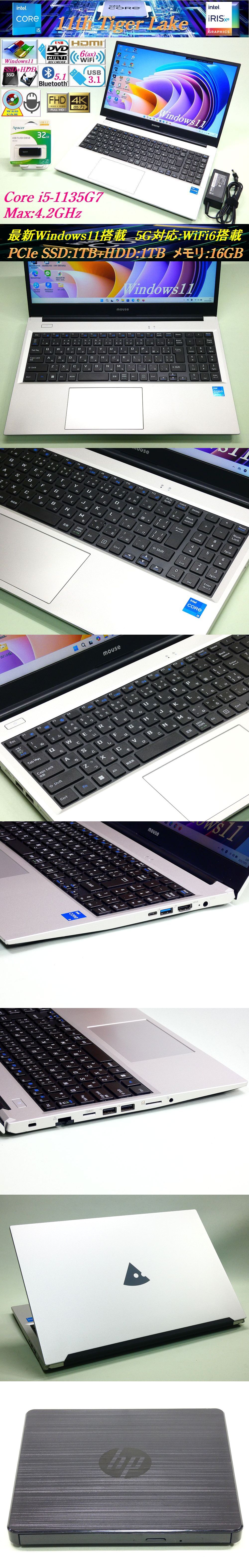 【特徴】:超高性能、超高速、最新多機能パソコン -高年式2022年4月モデル →Windows11正式対応モデル -Windows11最新バージョン 25H2搭載 -インテル 第11世代CPU Core i5-1135G7 -インテル Iris Xe Graphics -大容量 SSD/1TB(M.2, NVME, PCIe) -大容量 HDD/1TB(SATA600) -DVDマルチドライブ(USB接続) -大容量 メモリ/16GB(DDR4-3200) -USB3.1 Type-C コネクタ -WiFi6(ax)対応&Bluetooth5.1 -バッテリー【新品】交換済 -オールセットアップ済。即使用OK!! →充実したマニュアルも標準添付 マウスコンピューターについて パソコン専門の国内製造のブランドで、高性能かつ高機能なパソコンの製作に定評があります。 基本性能の充実はもちろん、拡張性や音響、メンテナンス性など多角的な設計が高く評価されており、根強い人気を誇ります。 特に注目すべきトレンドは、拡張性を最大限に活かした「3ドライブ仕様」です。 これは高速なNVMe SSD、大容量のSATA バックアップ用途のHDD、そして光学ドライブを組み合わせた構成で、パフォーマンスとストレージ容量の両立に加えディスク記録も可能にしています。 第10世代と比較して、CPU性能は約1.5倍、グラフィックス性能は約3倍に向上。処理能力が飛躍的に進化し、高画質な動画編集や動きの激しいゲームも快適に楽しめます。 さらに、PCIe対応の超高速SSDを搭載。OSやアプリをSSDに配置することで、起動時間を大幅に短縮し、複数のアプリを同時に使う作業もスムーズにこなせます。 加えて、高速DDR4メモリ(デュアルチャネル対応)を採用し、データ処理のさらなる高速化を実現。日常使いからクリエイティブな作業まで、あらゆるシーンで快適なパフォーマンスを発揮します。