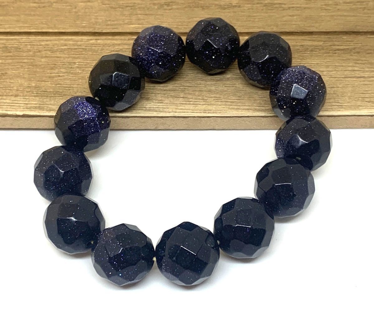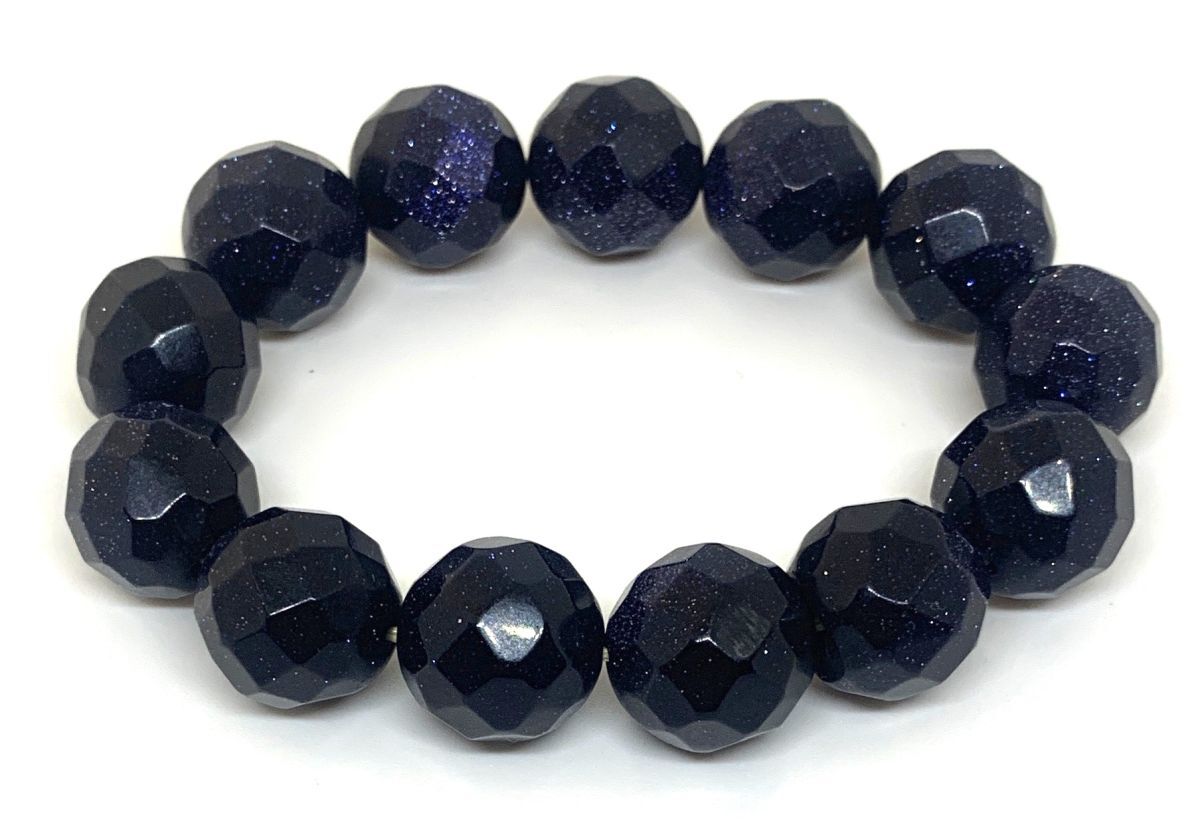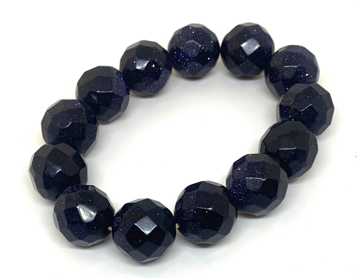 ブルーゴールドストーン(紫金石)別名ブルーサンドストーン。この石には、まるで夜空に煌く星空のような輝きが見られます。ブルーゴールドストーン(紫金石)には、出会い、チャンスを引き寄せるという意味があります。前向きな人生を目指したい人には、きっと良いパワーを与えてくれるでしょう。新しい環境が始まる人にピッタリです。明るい光のエネルギーに満ち「マイナス」を「プラス」へ変化させてくれます。「不安」「恐怖」「悲しみ」「怒り」などのネガティブな雑念を、綺麗にリセットしてくれます。またブルーゴールドストーン(紫金石)は、財運アップの効果があるパワーストーンで、持ち主のビジネスを成功に導く力が宿っています。資産の拡大を目指す時にもオススメです。