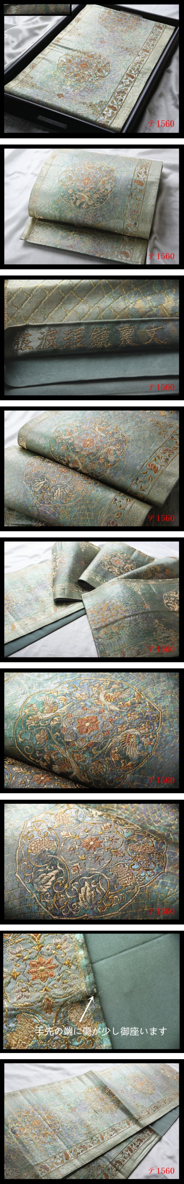 中々上手く撮影出来ないですが、現物は画像以上に、帯の色彩、質感・柄行きなど大変美しい高級品です 職人の技が光る逸品です。 大胆なデザイン★職人独自巧み技 精緻な意匠表現重厚感際立つ美術帯の作品 ★職人の感性と細やかな巧み技★織細な技術とで綾なされた逸品★きめ細かな織が立体感、見る角度によって色んな表情、 織の創作性に富んだ意匠センスが魅力的細緻極まる織り味で表現された豪華な高級感に満ち溢れた日本情緒が匂い立つ意匠の格調高い帯姿を纏う帯です。 優美な意匠はとりわけ華麗な和の真髄を表し 非常に洗練された紋を取り入れた意匠は見る者を圧倒し、ひと際華やかで美しい、堂々とした存在感が漂います。 地色の美しさもまた格別です。文様に使われている様々な色糸も、それぞれに色そのものが上品で美しく、 見ていても飽きないほどうっとりするような洗練された色柄が秀逸です。 繊細な大変上質な高級織物の風合いの良さが息づいた日本独自の古典伝統美 とても綺麗な色い格調超高い★高級帯 お好きな方・お探しでした方は是非この機会にご検討ください。 優美な意匠があしらわれた袋帯です 吉祥の気配漂う意匠をお楽しみください、 かっこよくエレガントな雰囲気も期待できます 高価な高級袋帯はこれより低価で出品する事まずございません、早い者勝ち 同じお品物は二度と出回らない限定の出品で御座いますのでお見逃し無く. 他でも販売していますので、予告なく出品を取り消す場合がございます。 何卒ご了承ください。 注意事項 ーーーーーーーーーーーーーーーーー 中古品にご理解のある方のみ入札をお願いします。 中古品である事を御理解下さい お着物や帯の生地などの伸縮性のため、サイズに若干の誤差がある場合がございます。御了承下さい。 トラブルを防ぎ、商品の状態・判断し易いため 弊社は努力して、色々角度から丁寧に商品撮影しており 商品写真をよくご覧頂き御自身の責任を持って 商品の状態・慎重に判断して入札をお願い致します ノークレーム・ノーリターンでお願いします 他でも販売していますので、予告なく出品を取り消す場合がございます。何卒ご了承ください。 ★1つ1つ実際の商品を撮影し 出来る限り同じ発色に近づけるよう撮影しておりますが、撮影環境、フラッシュを使用している場合があります、 ディスプレイ等の関係で、実物の色と多少異なる場合がございますのでご了承下さいませ 商品画像は撮影後に画像の編集は一切行っておりません。 ※商品は画像の物が全てです。 お客様ご使用のブラウザやパソコンのモニター環境などによっては、多少色合いなどが実物の色と異なって見える場合がございます。 画像色の淡濃が実物の色と多少異なる場合もございますので、予めご了承いただけますようお願い申し上げます。 未使用のお品に関しましても、あくまで一度人の手に渡った品ですので、完璧なものをお望みの方は入札をお控え下さい。 トラブルを防ぎ、写真、商品説明をよく読みになり、神経質な方のご入札はご遠慮ください 色やイメージ違い等での返品・交換はお受けできません イメージと違う等のクレームは一切お受け出来ませんのでご理解ください。 理解できない方、説明文・画像等で判断つかない方、 同意できない方大変神経質な方は入札しないで下さい。 当店からの説明文・画像等をご納得頂いた上でノークレーム、ノーリターンを厳守できる方のみでご入札お願いします オークションの為、原則ノークレーム・ノーリターンでお願い致します。 ただし、ご到着の品がご落札の品と違った場合や寸法などが商品説明と著しく違う場合は、お手数ですが商品到着後、 3天以内に連絡掲示板にてご連絡ください。誠意を持って対応させていただきます (商品到着後3天を過ぎた場合は対応いたしかねます)。 商品到着日に関してですが、商品到着日指定のご連絡がない場合、商品発送日の翌日(九州)または翌々日(北海道・本州・四国・沖縄)を到着日とさせていただきます。 予めご了承ください。 当方商品は中古として取り扱っております。 【新品出品するの場合明記致します】 経年に伴うシミ汚れ等のチェックには注意を払っておりますが、見落としがある場合もございますし、 ★箪笥に入っておりました着物や帯なので畳みシワや匂いがあるものもございます。 未使用のお品に関しましても、あくまで一度人の手に渡った品ですので、 完璧なものをお望みの方は入札をお控え下さい。 瑕疵の状態に関しましては、個々の見解の違いがありますのでご了承ください。 細かい瑕疵等が画像で確認できない場合がございます。 ご入札ご落札後は瑕疵の状態についての保証はいたしかねます。 実物との色合い誤差を無くす為、極力丁寧な撮影を心がけておりますが、パソコン上で表示される色は各モニターの性能や設定により異なる場合がございます。 予めご理解の程よろしくお願いいたします。 お客様画像を