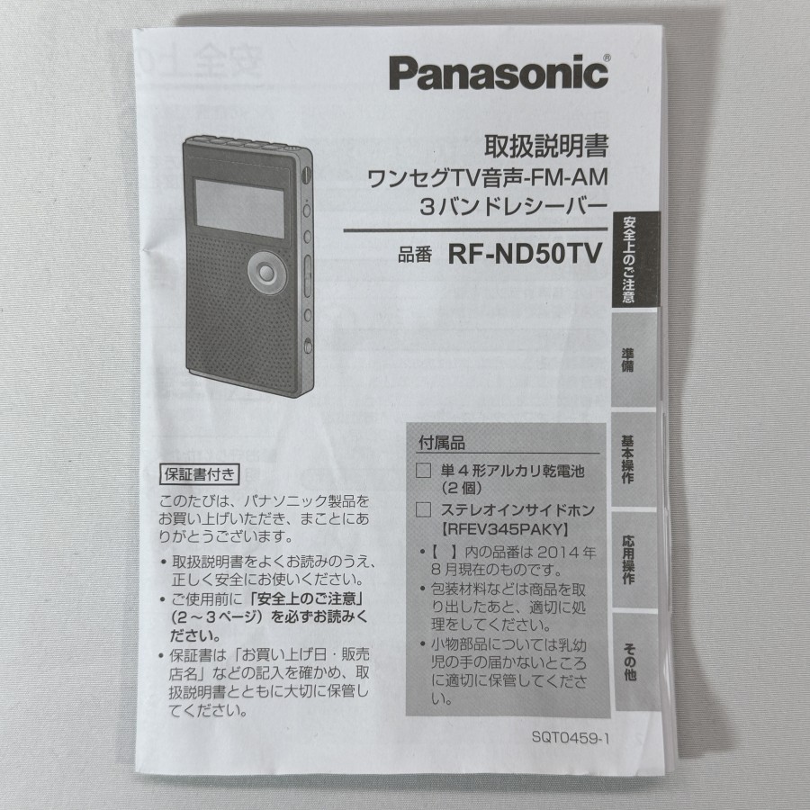 | □ 【FM/AM受信確認済】 Panasonic RF-ND50TV FM AM ワンセグTV音声 3バンドレシーバー ポケットラジオ 集音器 防災 登山 競馬 等 □ W01-1226 |
