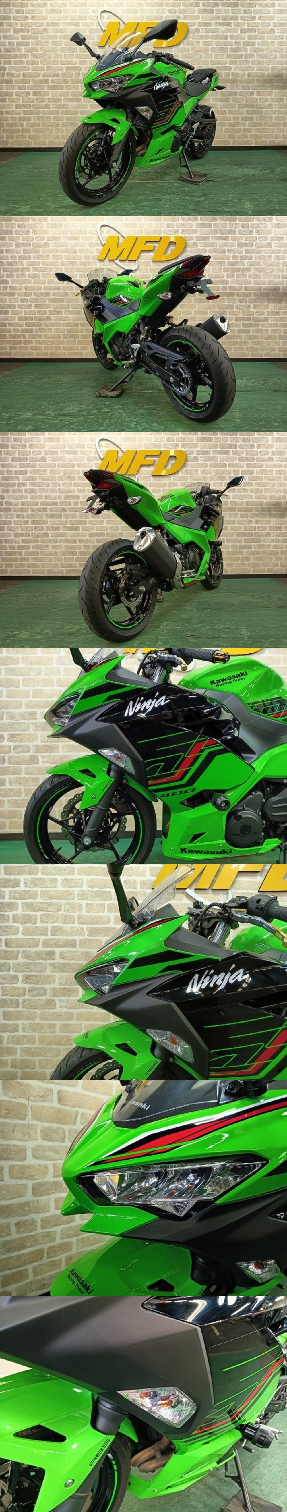 | ■□ 車両詳細 □■ カワサキ NINJA400 KRTエディション 緑 2024年モデル 走行距離:9,181㎞ カスタム詳細 ・マルチバー ・デイトナパーツ(バーエンド、オイルキャップ、リアブレーキフルードキャップ) ・キジマフェンダーレス ・エンジンスライダー ・ラジエターコアガード 他 --------------------- モトフィールドドッカーズ【MFD】グループの大阪店です。二輪販売・買取り出張査定から整備・カスタムまでバイクにかかわる事なら何でもお任せ下さい! 原付スクーターから大型二輪まで各種在庫の約150台を常時展示しています。 ご購入をご検討のお客様は必ず下記をご熟読ください。 お読みになられていない場合のクレームにはお応えできかねます。 ■□ 通常販売(登録・整備付き) ・車両価格+諸費用にて承ります! ・保証をお付け致します!(製造経過年数により保証日数が異なります・MFD各店でのみの保証対応となります) ・アフターサービスはもちろん全国各MFD支店でお受け頂けます。 ・お得なMFD店舗間配送(一律¥16,500-)をご利用頂けます! ■□ 現状販売(登録・整備なし) ・保証は一切ございません。整備前の車両であることをご理解ください。ノークレーム・ノーリターンでお願い致します。 ・お支払いは現金支払いのみ可能です。 ・車検が残っている車両は、名義変更確認後の車両引き渡しとなります。 ・自走での引き渡しはお客様の安全の為お断り致します。必ず積車でのお引き取り、またはご自宅配送でお願い致します。 ・ETC付きの車両の場合、ETCは取り外しいたします。それに伴うお値引き・代替サービスはございません。 ・MFD店舗間配送をご利用頂けません。 ・保証延長サービスをご利用頂けません。 ※出品車両は店頭でも随時展示・販売しております。ご落札と店頭での商談・ご契約が重なった場合は店頭でのご契約を優先させていただきます。あしからずご了承ください。 ■□ 店舗情報 □■ スズキ・ハスクバーナ・GPX・ホンダ(250cc以下)・ファンティック正規代理店! 幅広いオートバイの知識を持った国家整備士免許保持者が複数名在籍。 末永くお付き合い頂ける様にアフターメンテナンスやカスタムが出来るオートバイショップを目指しております。 常時150台(グループ在庫1,000台)以上の在庫車からご案内させて頂きます。 原付から大型バイクまで各車種を大量展示しております! 新車原付は最短即日納車も可能ですので是非ご相談下さい♪ MFDグループでは動かなくなった原付バイクから大型バイクの高価下取り&買取の出張査定実施中!! カスタム済み大型バイクは特に大得意です♪ 気になったバイクがあればまずはお問い合わせ下さい!! HP https://osaka.dockers.co.jp/ FB https://www.facebook.com/osaka.mfd X https://twitter.com/mfd_osaka インスタ https://www.instagram.com/dockers_osaka/?hl=ja LINEでもお得情報配信中♪ @634cluwn |