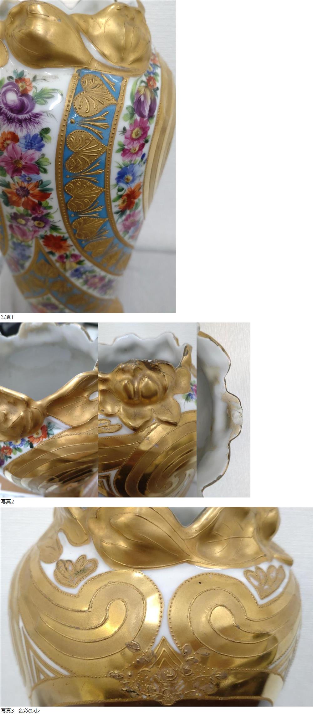 | ●商品説明● | ご覧いただき誠にありがとうございます。 『飾り壺 高さ約:36.5cm 貴婦人肖像画 花紋様 金彩 手描きアンティーク キャビネット花瓶 』の出品になります。 ![]() 【状態】 頂き物です。 画像の通り、縁に一カ所チップ、その修復跡があります。 その他、経年による金彩のスレや内側や底面に汚れ見られます。 画像にてご確認お願いします。 ☆☆アンティークの風合いとして見れる箇所もございますので、 アンティーク品にご理解のある方の入札をお待ちしております。☆☆ ※カテゴリー選択上、『1800年-1900年』としていますが、デザインや風合いからの正確な年代の判別は、落札者様にて画像よりご判断お願いいたします。 ご了承の上入札お願い致します。 ※状態はあくまでの出品者主観によるものです。 全ては写真にてご判断願います。 ※専門家ではない為、見落としがあるかも知れませんが その場合は、ご容赦ください。 【商品】 『飾り壺 高さ約:36.5cm 貴婦人肖像画 花紋様 金彩 手描きアンティーク キャビネット花瓶 』 ※素人カウントゆえ多少の誤差はご容赦ください。 高さ約:36.5cm 最大幅約:12cm 口径(内径)約:8cm 専門的な質問にお答え致しかねますのでご了承頂ける 方のみご入札お願い致します。 ※※神経質な方はご遠慮くださいませ。 素人ですので専門的な質問には答えられません。 また領収書の発行は行っていませんのでご了承ください。 落札後のクレーム・返品・質問は一切受け付けておりません。 質問がある場合は【事前に・落札前に】お願いいたします。 ★上記の内容に理解を得られる方、また画像で判断できる方のみご入札をお願いします。 | |
