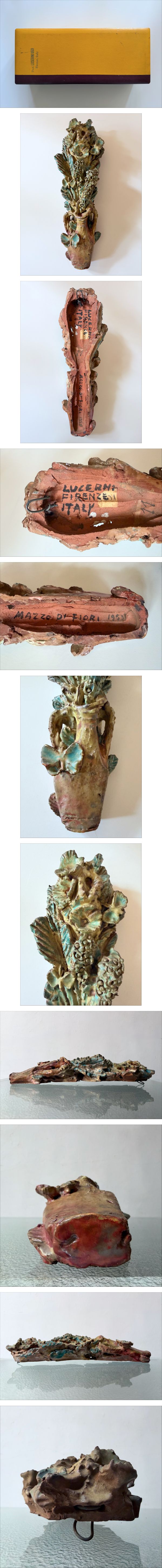 1953年.イタリア.画家,彫刻家,陶芸家でもあるUGO LUCERNI(ウーゴ・ルチェルニ)によるテラコッタ製ウォールスカルプチャー。箱付属。状態..長い間,箱に保存された極美品。寸法.41x13.5x8.5cm.箱寸法..20x48x11cm。ルチェルニはジオポンティにも高く評価されていたようですね。1950年代のイタリアのこの雰囲気,とても良いです。