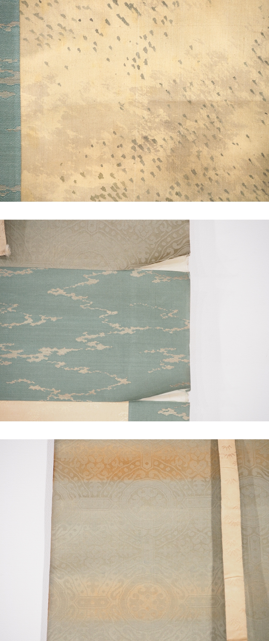 | 小ジワ、シミあり 表具痛み、焼けあり 片側軸先なし |