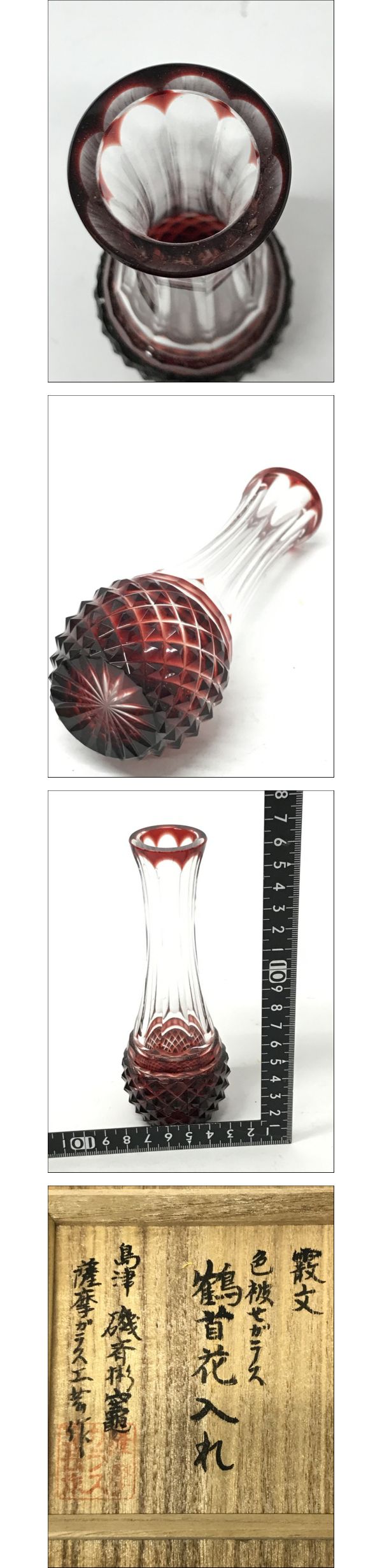 | 4.296 ▲ 島津薩摩切子(しまづさつまきりこ) 卓上花瓶(花入れ) 金赤 | ||