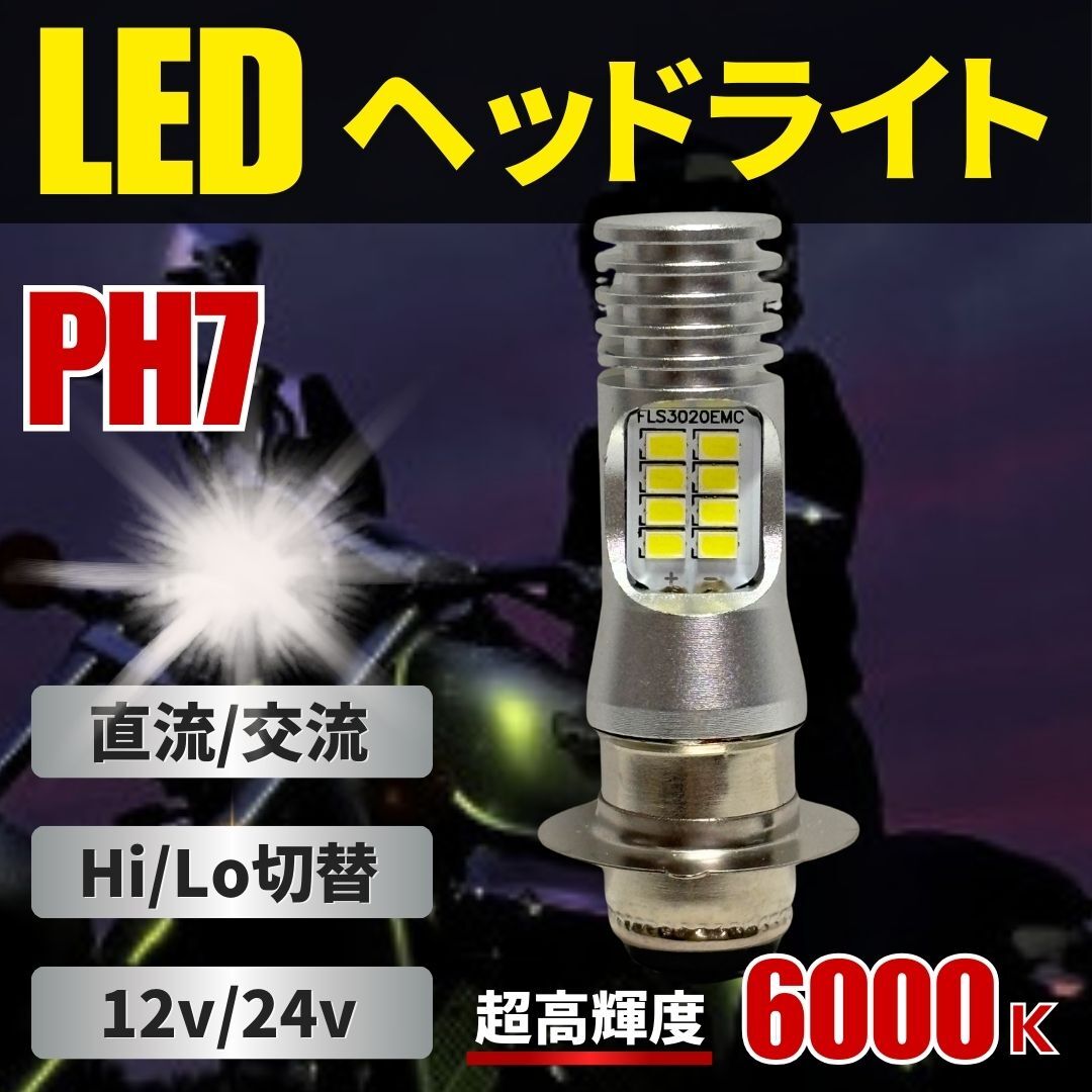 バイク ホンダ ヤマハ ヘッドライト LED バルブ PH7 P15D 直流 交