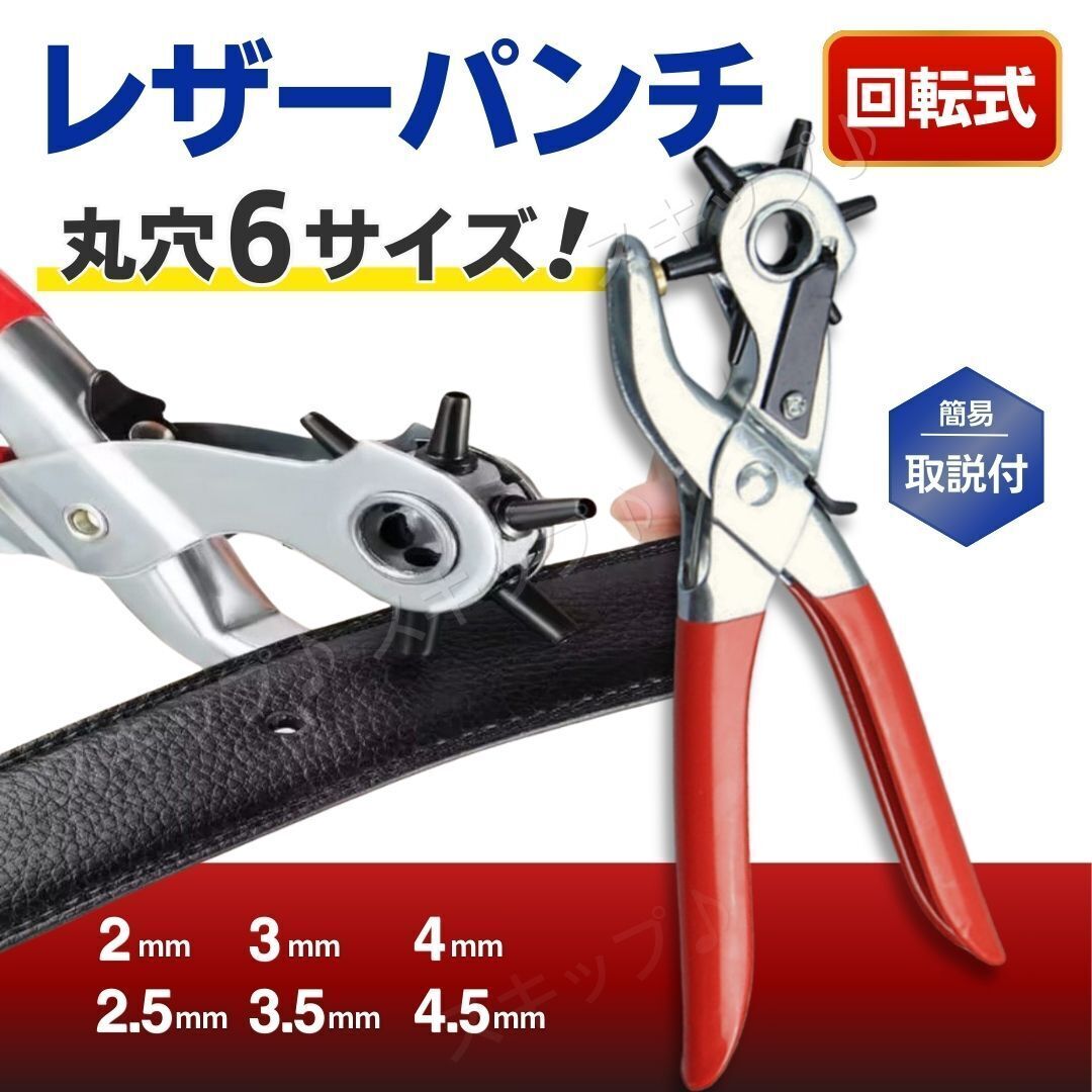 レザー パンチ ポンチ 穴あけ ベルト 工具 回転 6サイズ クラフト 革 ハン