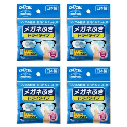 ダイセル メガネふき ドライタイプ 7枚入り 4個セット