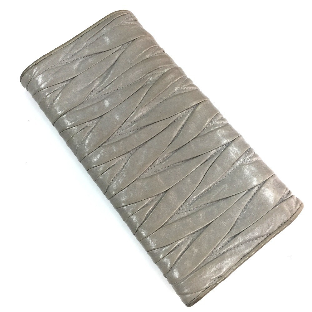 MIU MIU ミュウミュウ ファスナー付き長財布 MATELASSE(マテラッセ) 長財布 レザー グレー レディース 收藏
