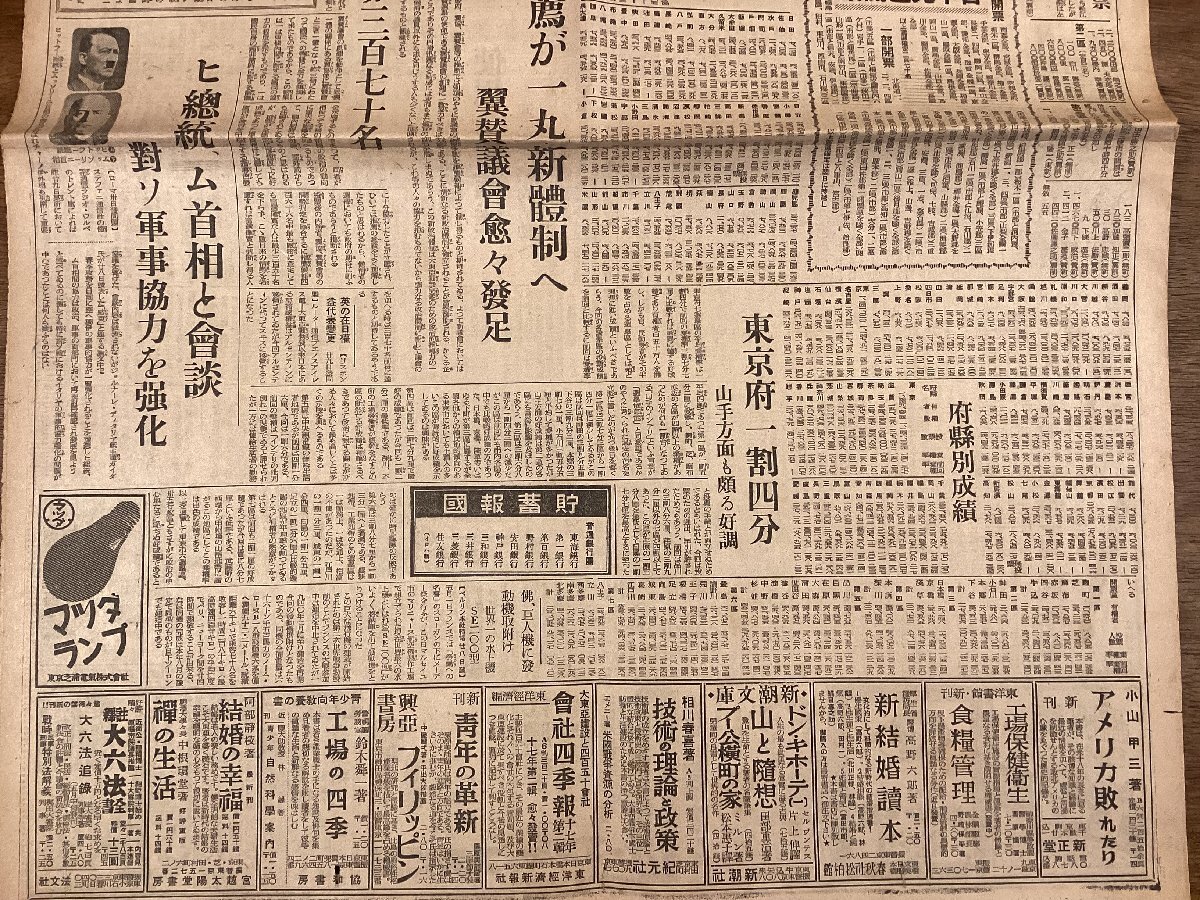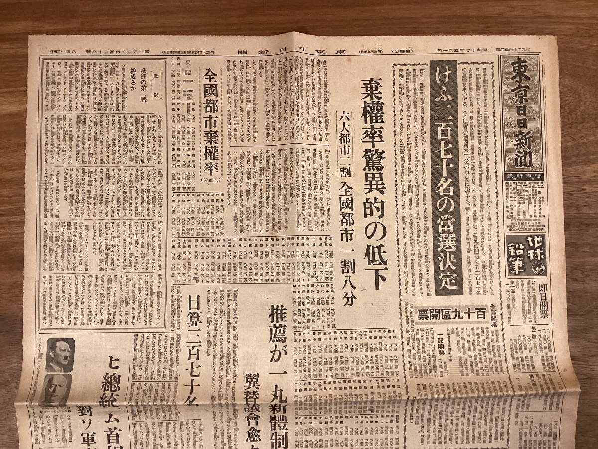 YY-0583■送料込■東京日日新聞 昭和17年 選挙 政治 相撲 軍隊 新聞紙 情報誌 広告 宣伝 印刷物 ●破損有り/くOKら 收藏