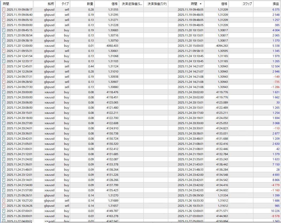 私のMT5の取引履歴のスクリーンショットをこちらに掲載させて頂きました。