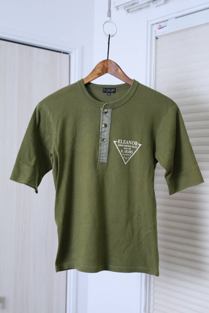 日本製R.J.BLuesの半端袖丈ヘンリーネックTシャツです。