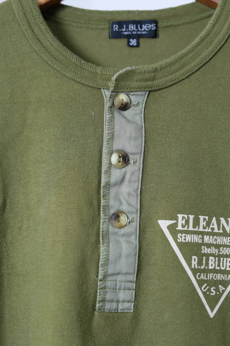 日本製R.J.BLues 半端袖丈プリントヘンリーネックTシャツ