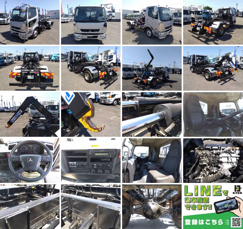 コンテナ専用車(アームロール) 上物:新明和製 ツインホイスト 積載3.4t メッキパーツ ETC付(動作未確認) 走行24.2万km 6速ミッション 中型免許(8t限定)対応車 排ガス適合(各都市乗り入れ&登録可) 車検付(R7/12/19) タイヤサイズ:225/80R17.5 |
