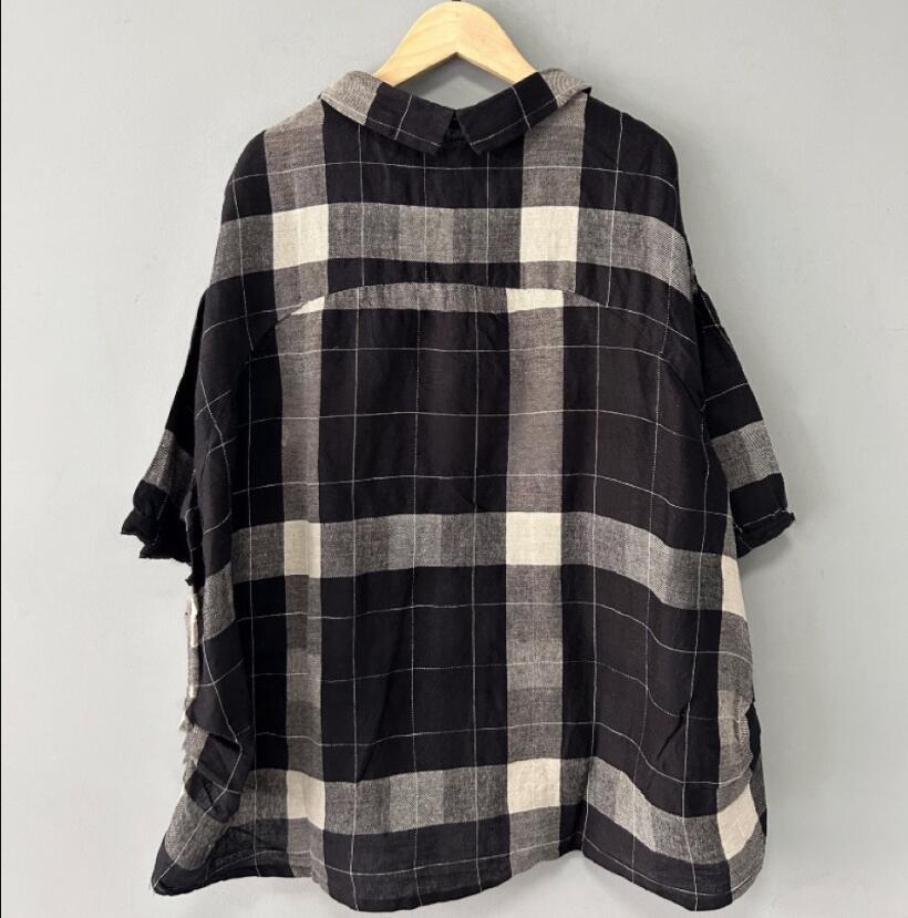 新入荷*レディース チュニック チェック柄 ブラウス トップス シャツ 半袖 コットンリネン ゆったり 大きいサイズ ロングシャツ*ベージュ 收藏