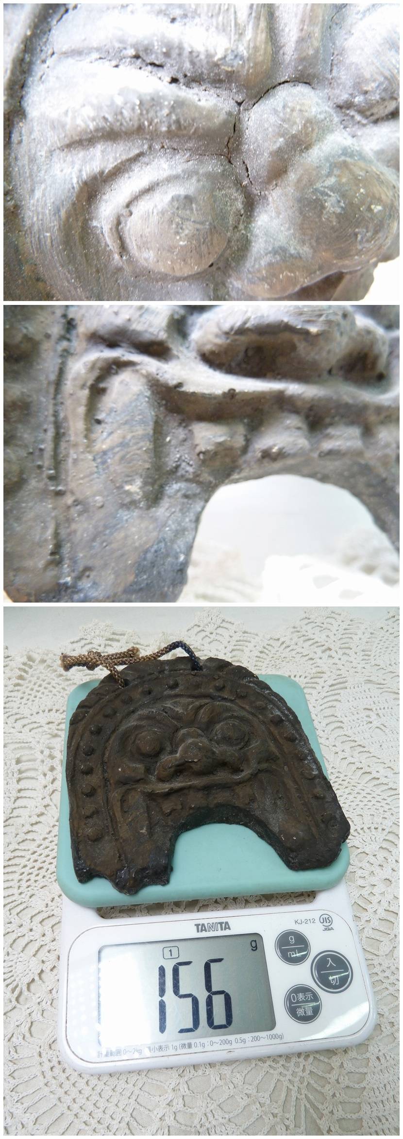 @鬼瓦 樹脂製 紐通しの穴開き 吊り下げ可能 魔除け 縁起物 重さ約156g 玄関 インテリア 雑貨 コレクション 昭和レトロ アンティーク 收藏
