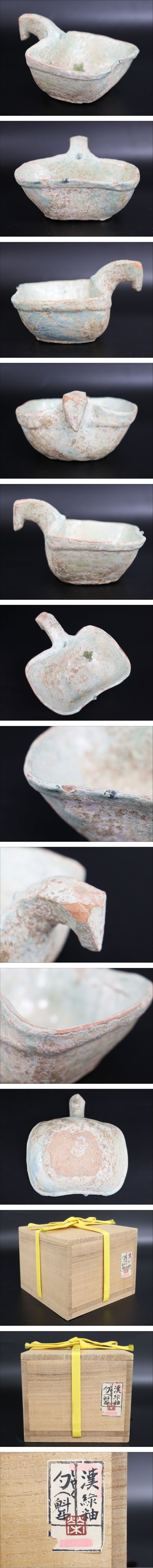 【行董】緑釉 勺 13.6cm 仕立箱付き 茶道具 陶磁器 美術品 陶芸 骨董品 骨董美術 AT116ABC02 收藏